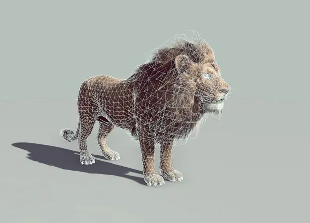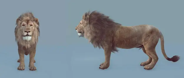 Realtime lion model ready for rigging and animation. -Mouth is CLOSED, can not be opened. -Fur built up using 90 planes with texture alpha
