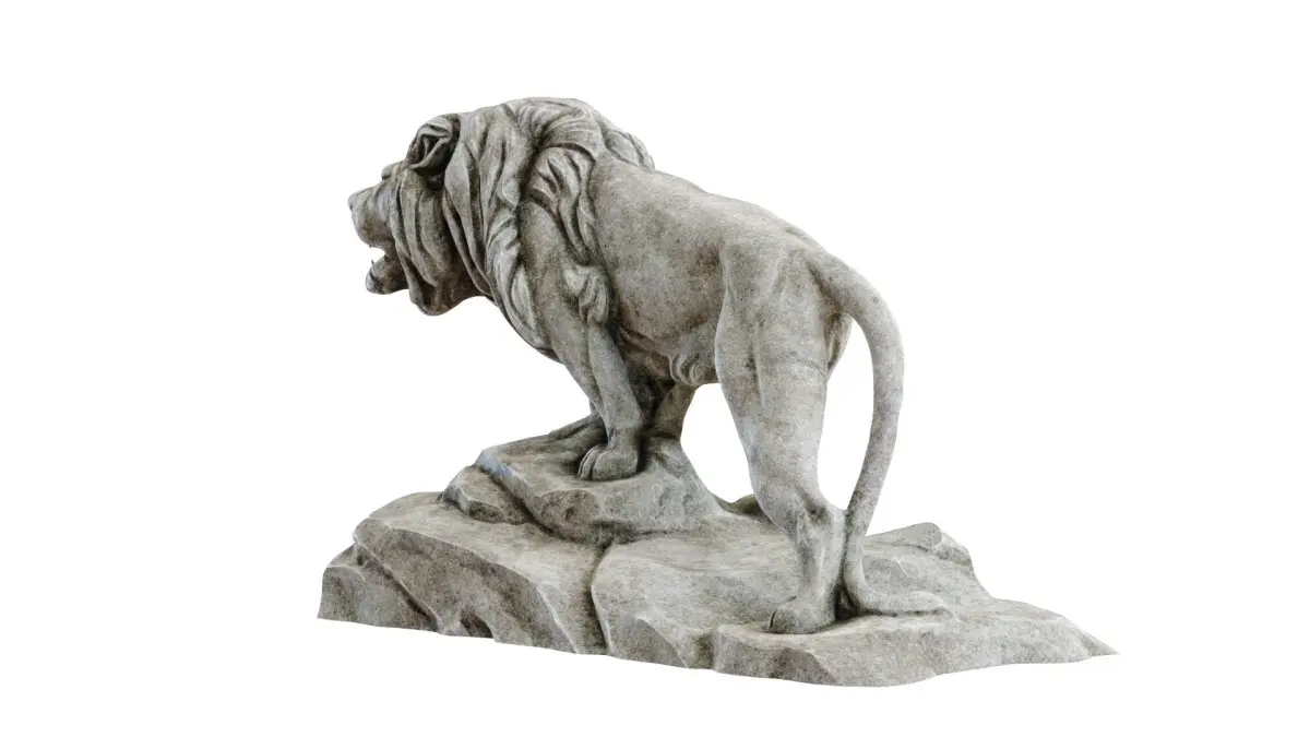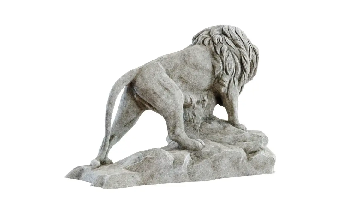 Sculpture of a lion. Suitable for exterior projects, and for interiors. In the archive there are two models: mid-poly (118k polys) and hi-poly (462k polys). Both are derived from a variety of an iteration in Zbrush and are not derived from meshsmooth. Unwrapped, all the textures are included (4k resolution).