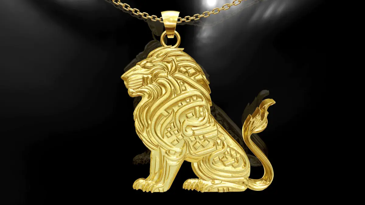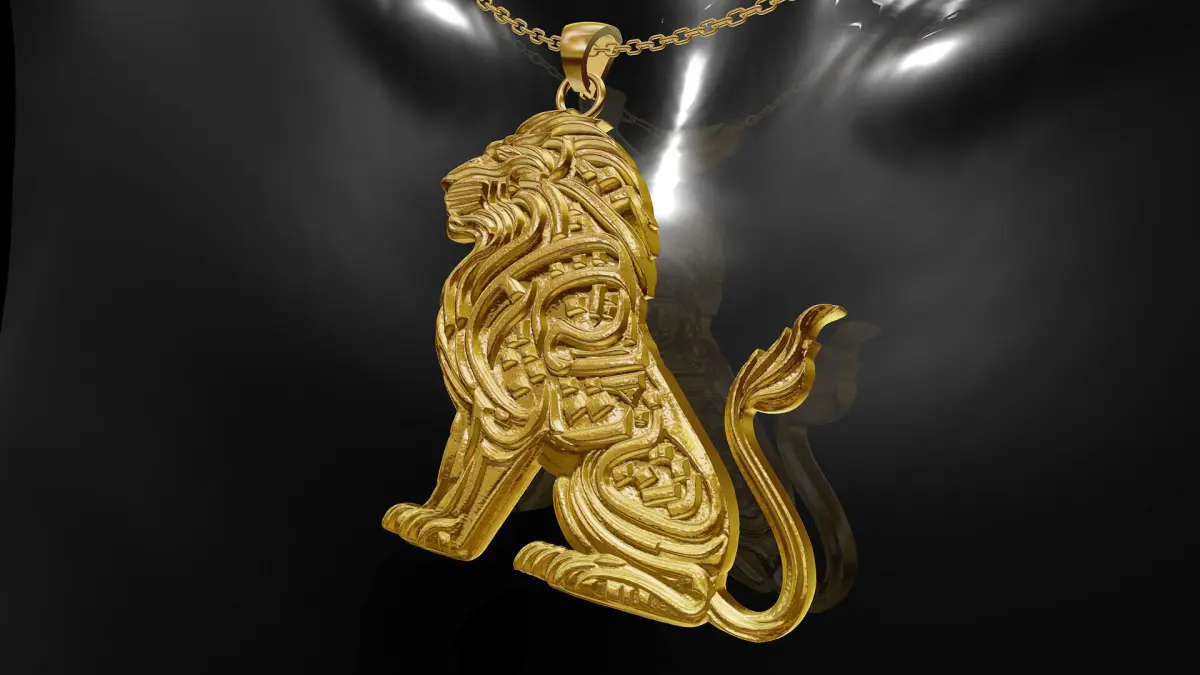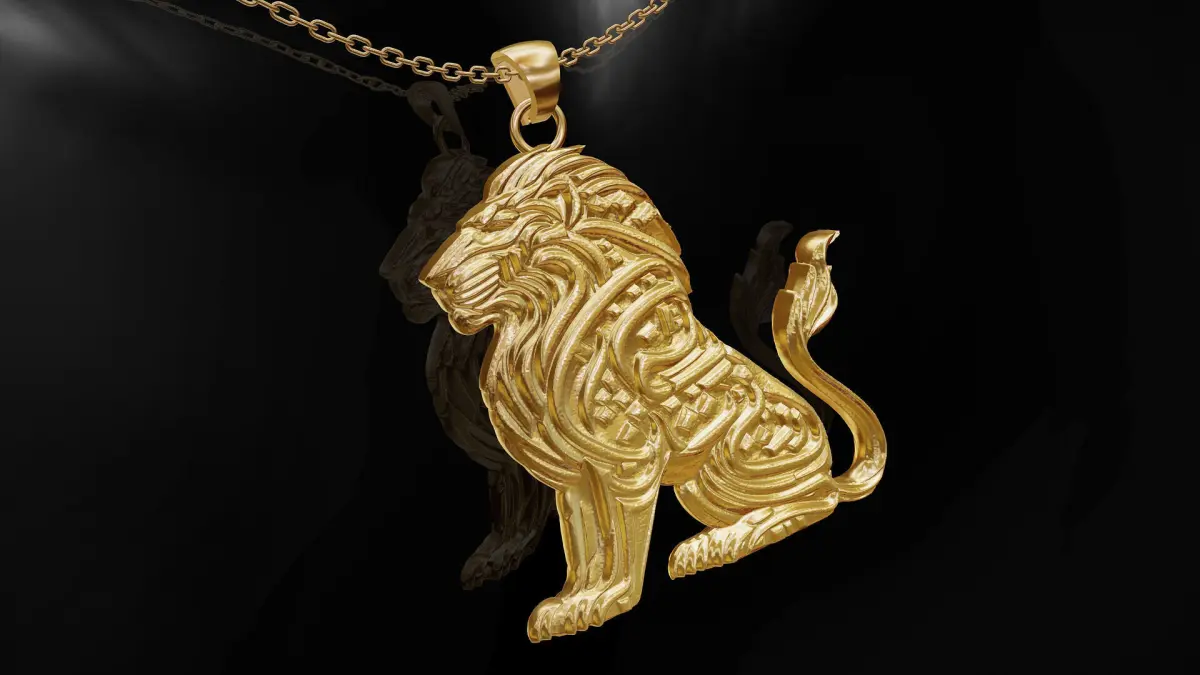 Lion statue gold pendant jewelry 3D print model