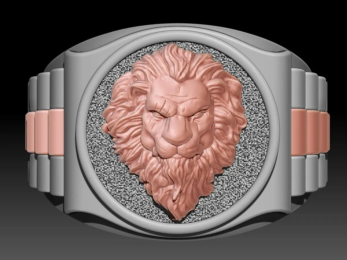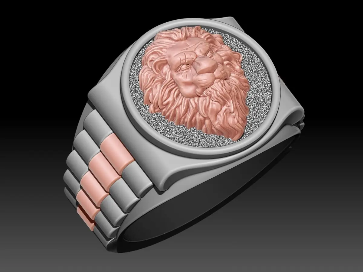 Lion tiger watch Man Ring silver gold printable jewelry 3D print model