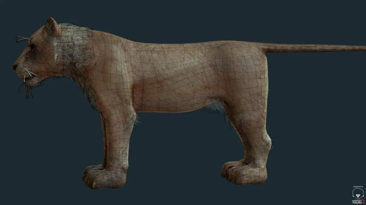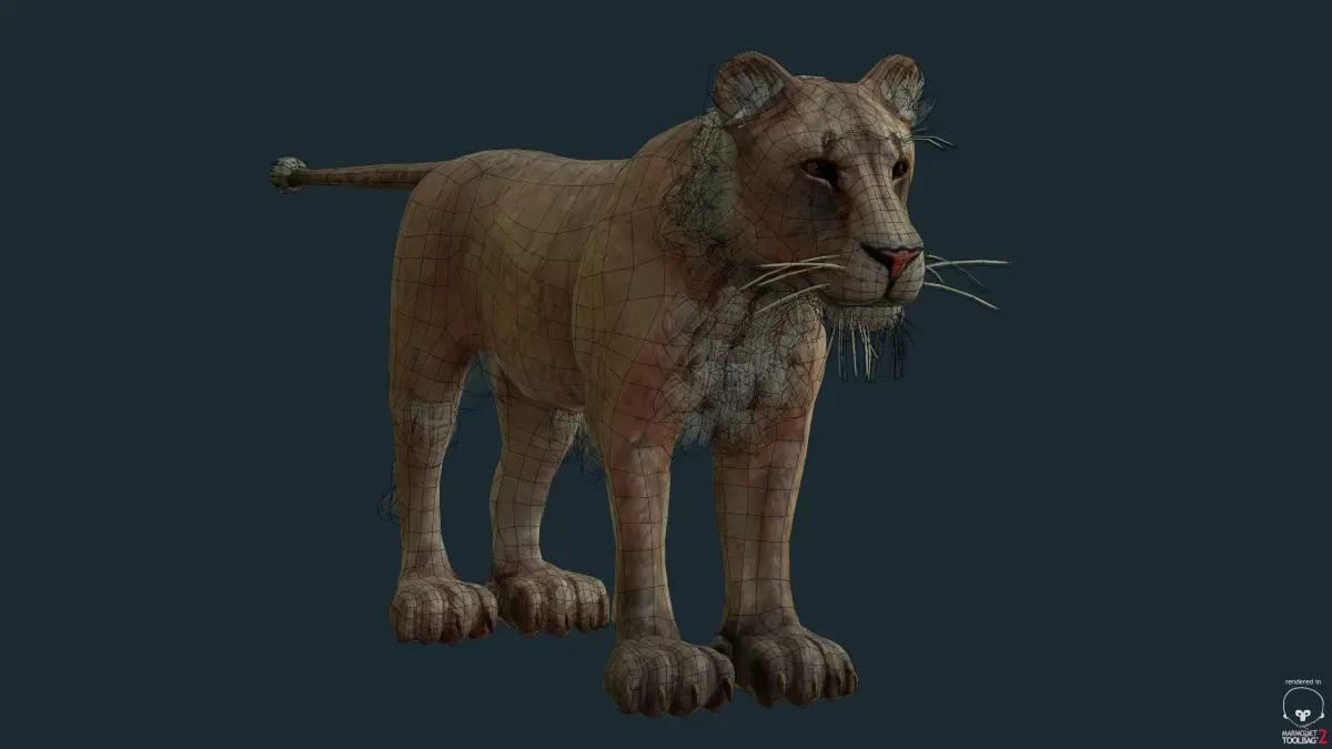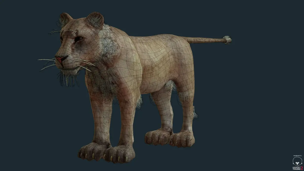 I present to you this fairly realistic and beautiful Lioness, fully UV-Mapped, Textured, and ready to Rig. The RAR file contains the following:1. An FBX file with all the geometry (individual pieces for Fur planes, eyes, teeth and so on),2. An OBJ file with the combined mesh,3. The following Texture Maps (All .tiff) Diffuse (TM) - 4K, Specular - 4K, Normal Map - 4K, Fuzz Map - 4K, Subdermis Map - 4K.