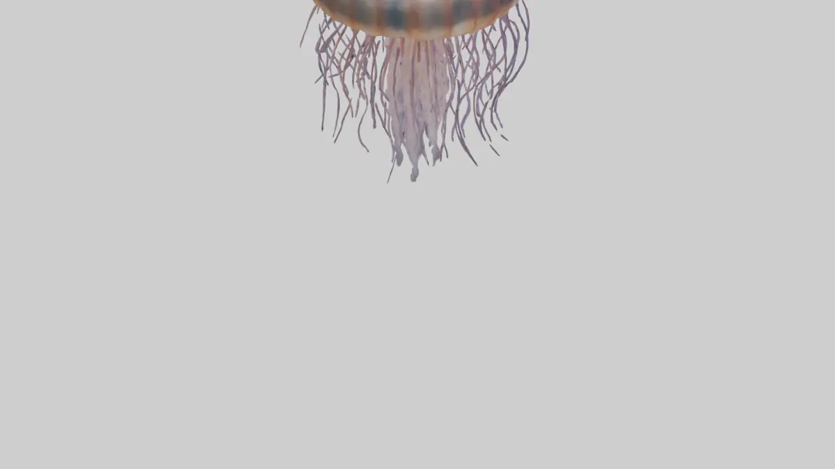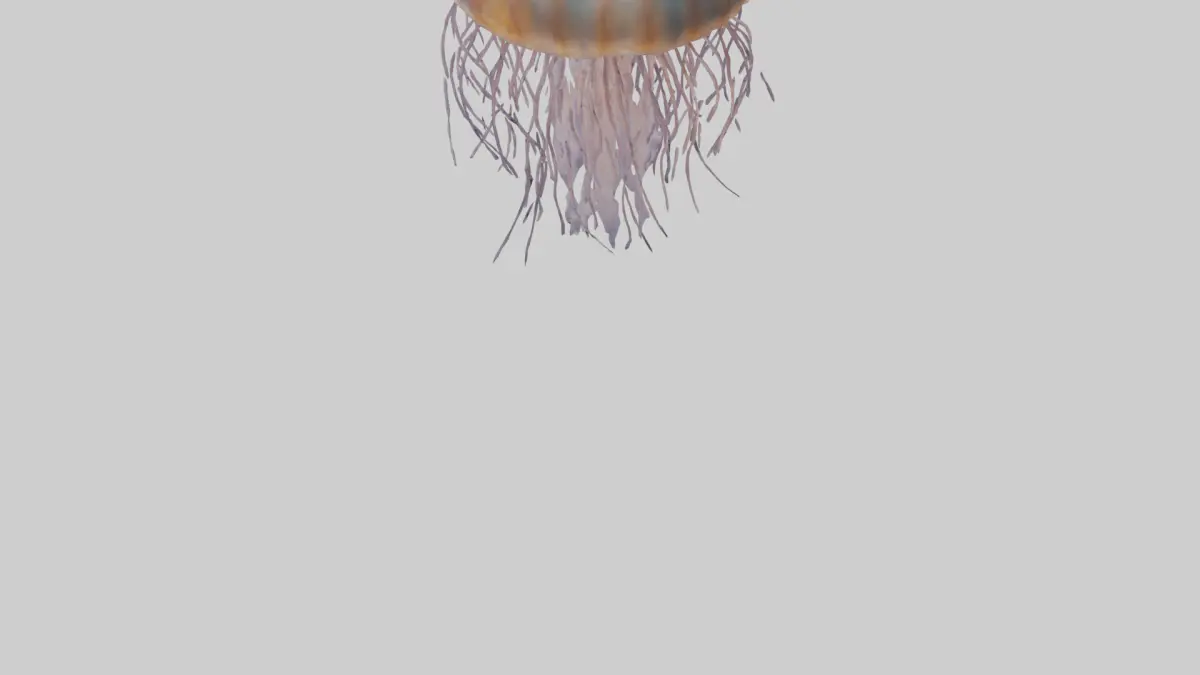 [Lion's Mane Jellyfish, 3D model, marine life, drifting jellyfish, underwater creature, animation, simulation, educational]
