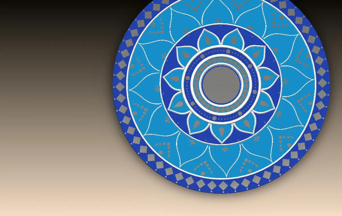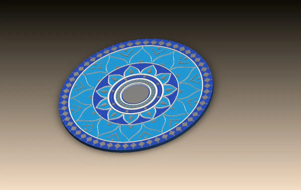 A 3D model of Lippan art captures the essence of this traditional Indian craft, known for its intricate mirror work and geometric patterns. In a three-dimensional form, the model would replicate the clay-based reliefs adorned with small mirrors, creating a textured surface that reflects light. The model may include detailed carvings and organic motifs, typical of Lippan art, with the mirrors strategically placed to enhance the visual appeal. This 3D representation can be used for digital visualization, cultural exhibits, or as inspiration for modern interpretations of the traditional art form.