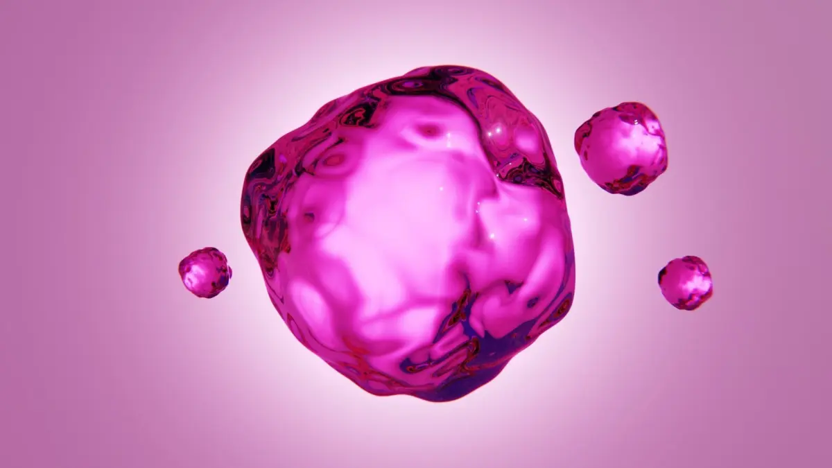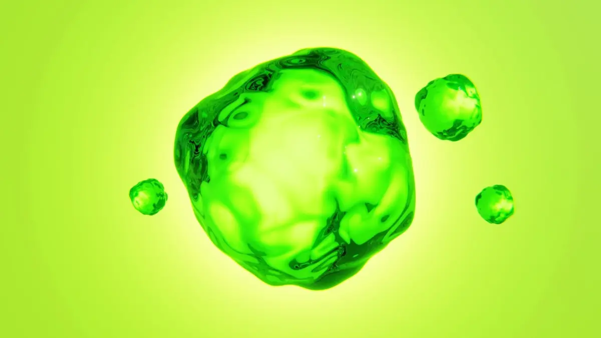 The main blob features smooth, quad-based topology with a collection of smaller satellite blobs orbiting in a natural, fluid-like motion — simulating plasma formations, alien organisms, or magical energy spheres suspended in mid-air. The procedural shader is crafted with node-based controls, allowing full customization over color, glow intensity, emission patterns, refraction, and surface roughness without requiring additional texture files.