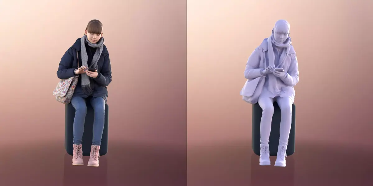 Our ready posed human will fit perfectly in your scene. Let's try it out. We also offer ready animated in our shop. Feel free to check it out. 3D Scanned People to enliven your perspectives just choose your model, drop it into your scene and render it!