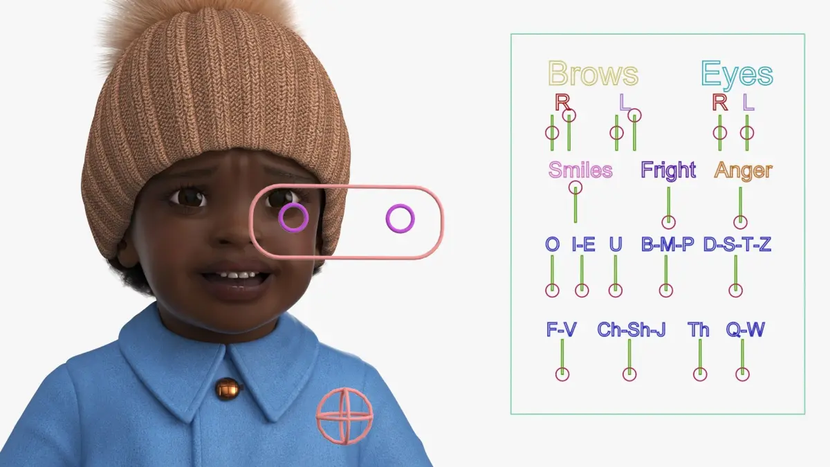 Little Black Girl Light Skin Autumn Clothes Fur Rigged is fully rigged and is ready to be animated. You can easily position it the way you need or animate it the way your project requires using helpers in 3D Studio Max. See the turntable to get an idea of how rigging works. The pose of the model on the render images is an example and can be recreated using rig, it is not initially included into the product.