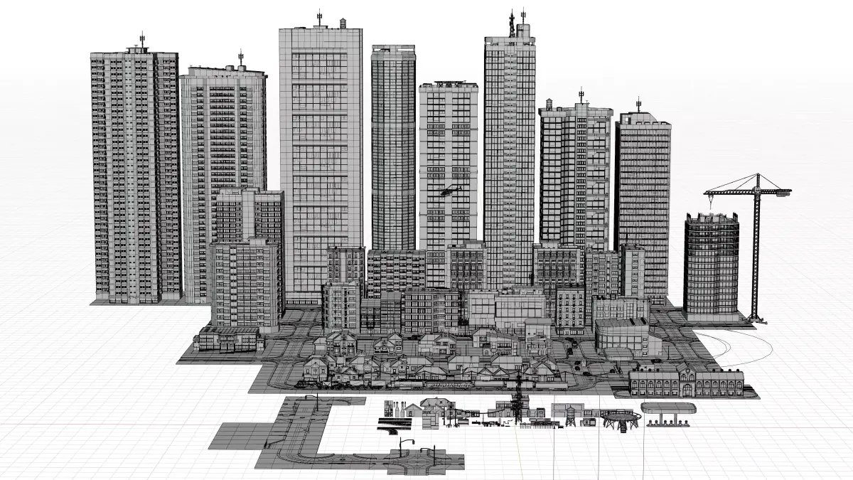 Lots of parts to create your own city, either for renders or creating simulations.The whole city is made using 3 PBR 4k atlas and some other complementary maps like glass roughness, etc.