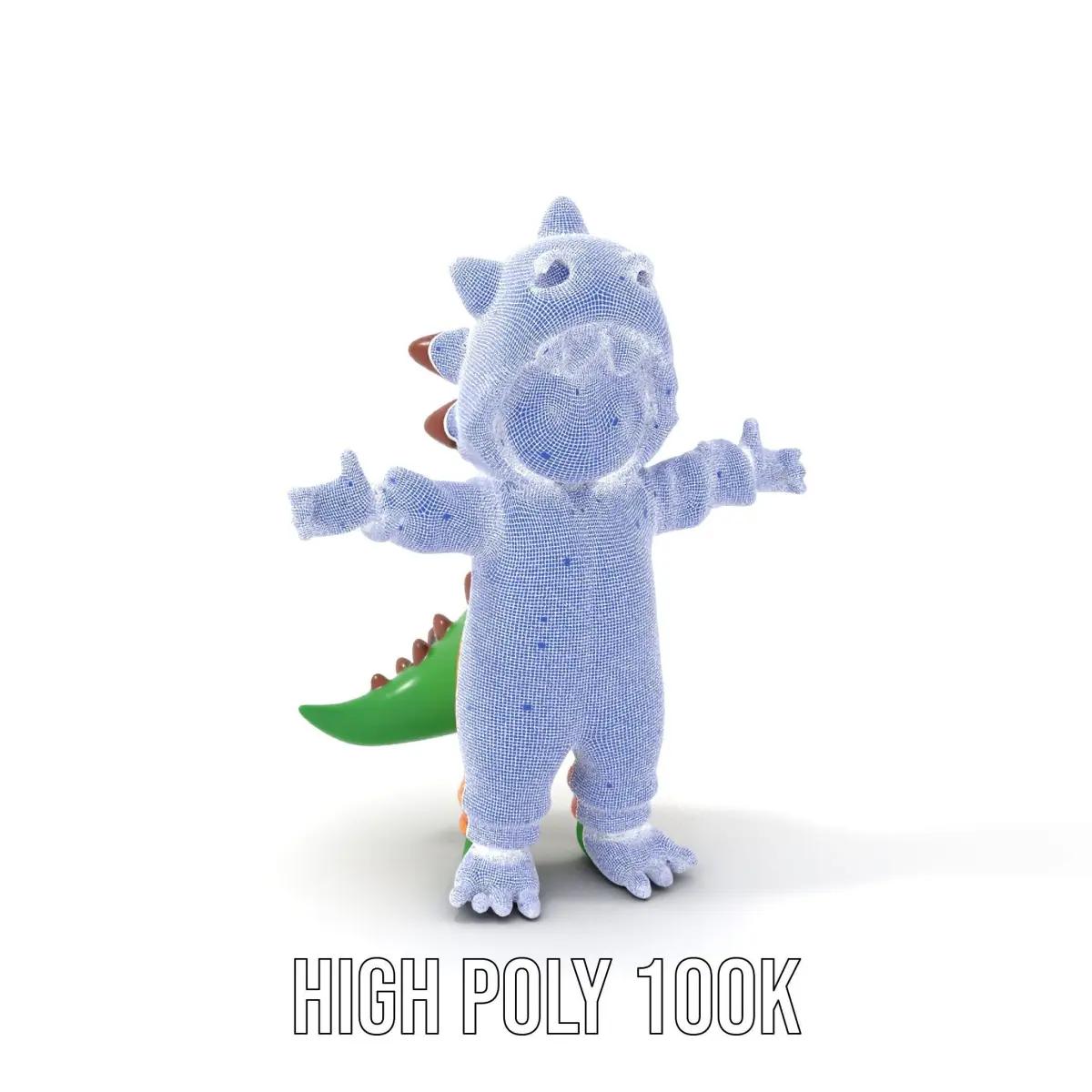 Little Dino Kid Character Rigged and Animated Low-poly 3D model