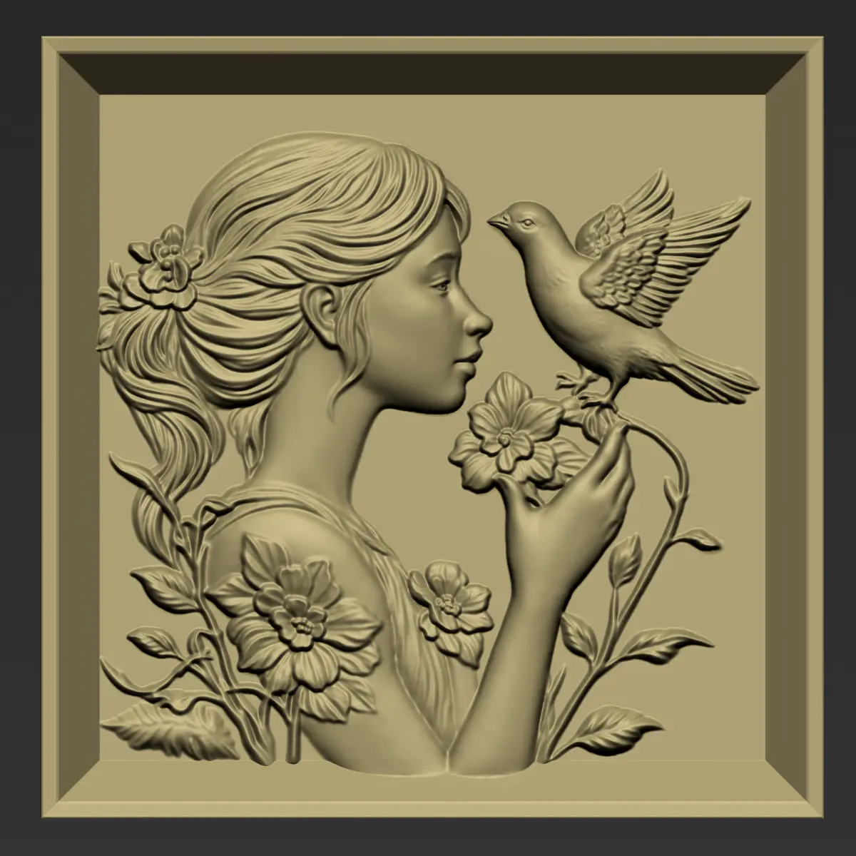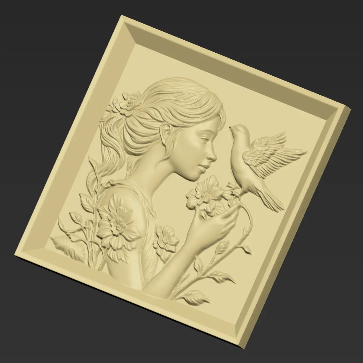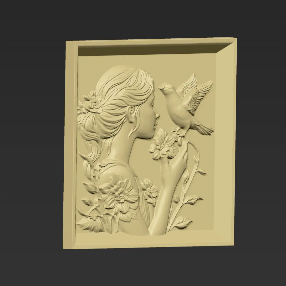 3d model of bas-relief of a little girl and a pigeon ready for CNC Router Carving or 3d printer.OBJ,STL format.Note:All the models are not for resale,it is illegal!
