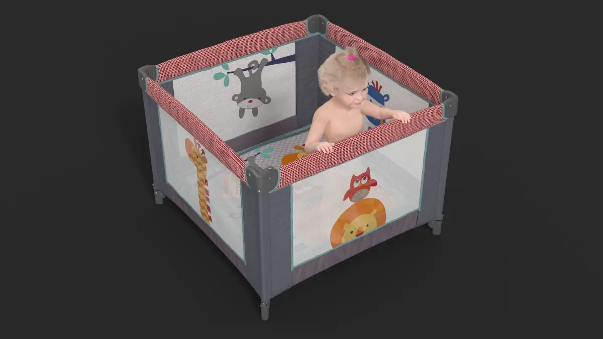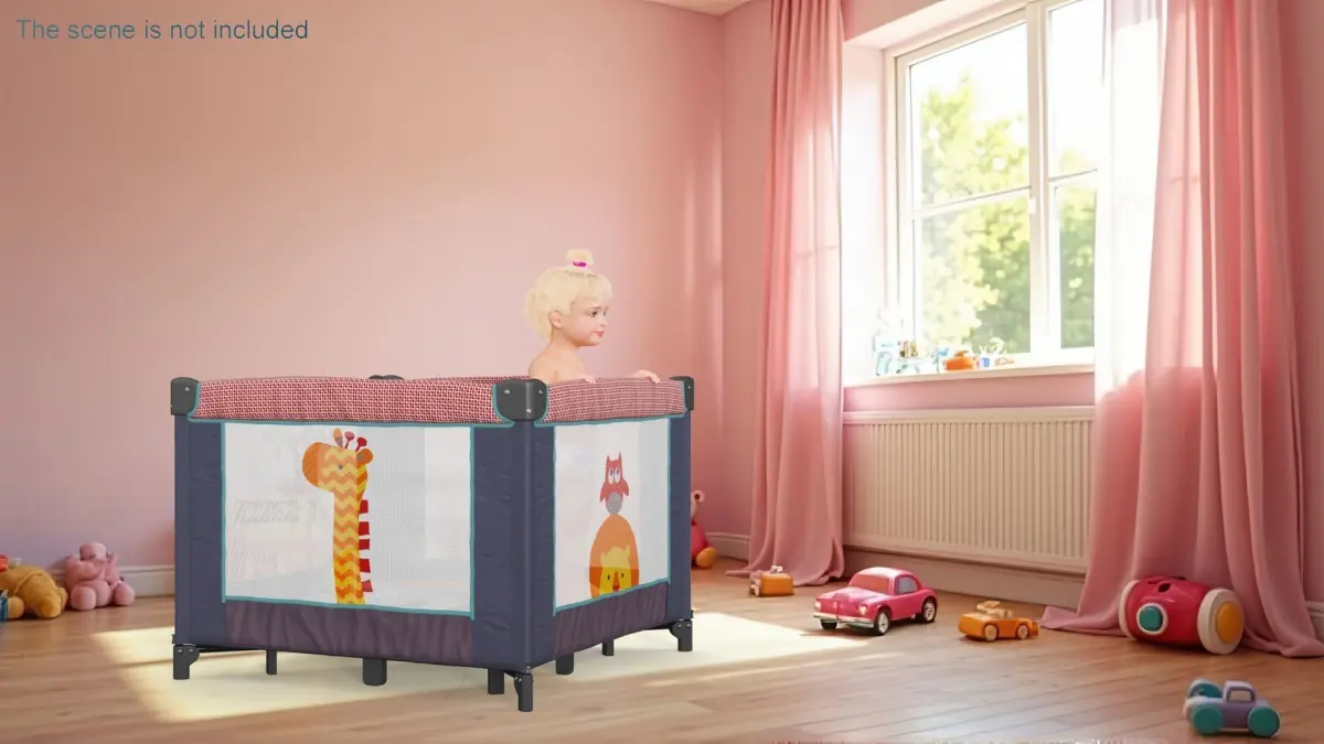 For child care, childhood equipment, raising children, babies fashion, home child hygiene, baby hygiene, children fashion, children raising, infant health care, children's medicine, infants feeding accessories, babies raising, baby care, and baby feeding accessories.Little Girl in Textile Playpen is a high quality, photo real 3d model that will enhance detail and realism to any of your rendering projects. The model has a fully textured, detailed design that allows for close-up renders, and was originally modeled in 3ds Max 2020 and rendered with V-Ray. Renders have no postprocessing!