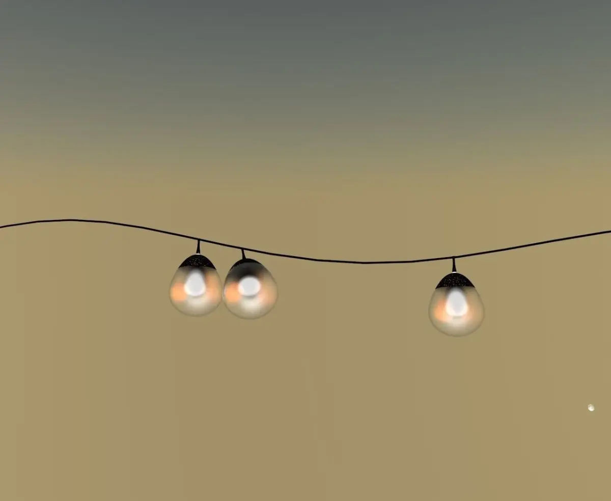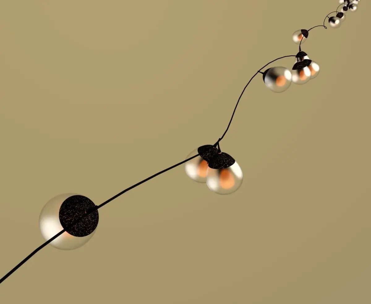 little retro bronze cap light bulbs on black rubber wire 3D model