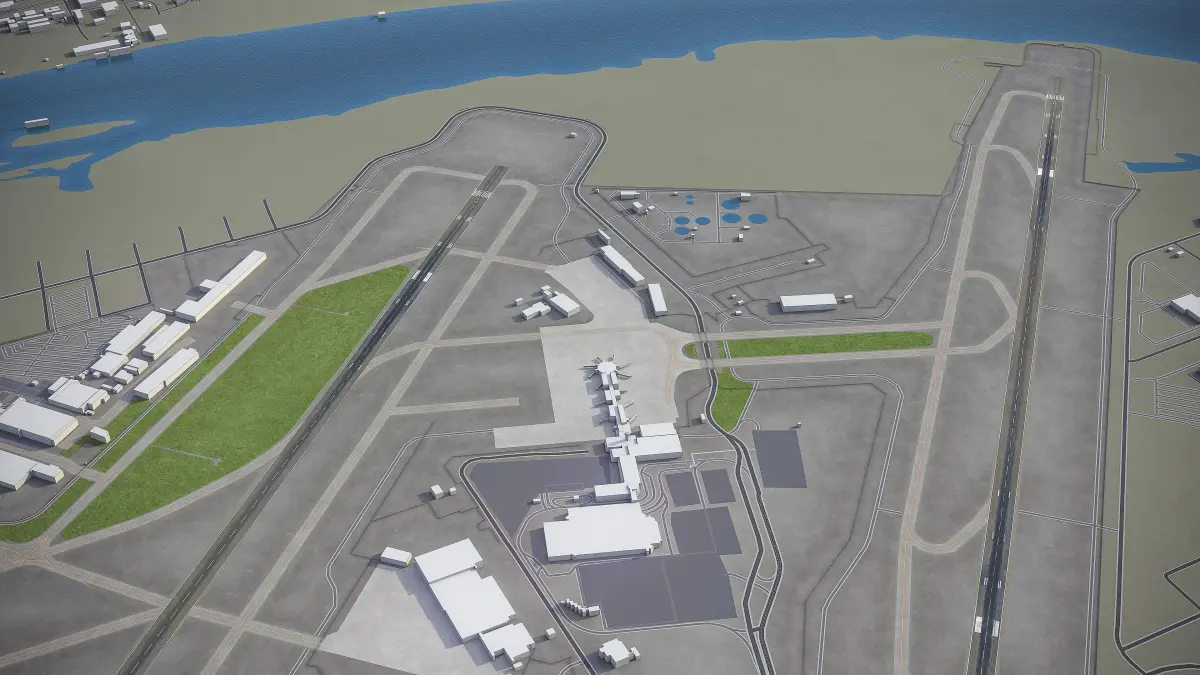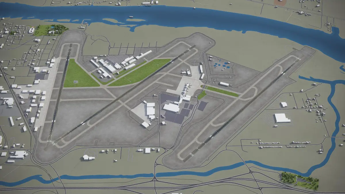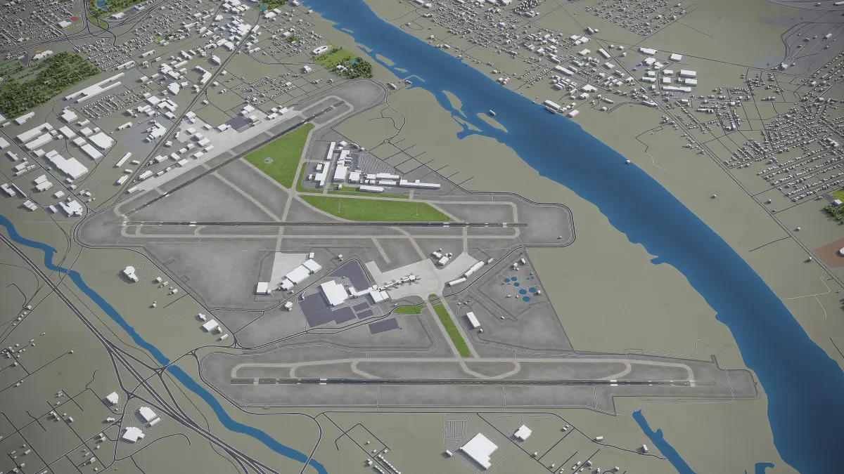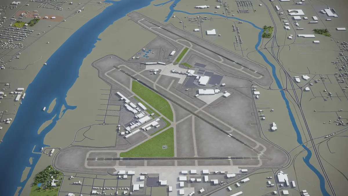This is exact and accurate to-scale 3D model of Bill and Hillary Clinton National Airport (LIT) and its surrounding area based on GIS data (May 2020)