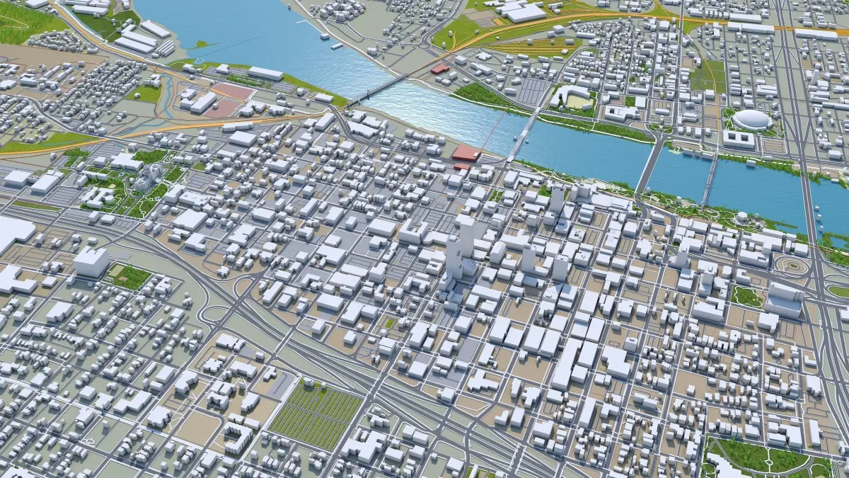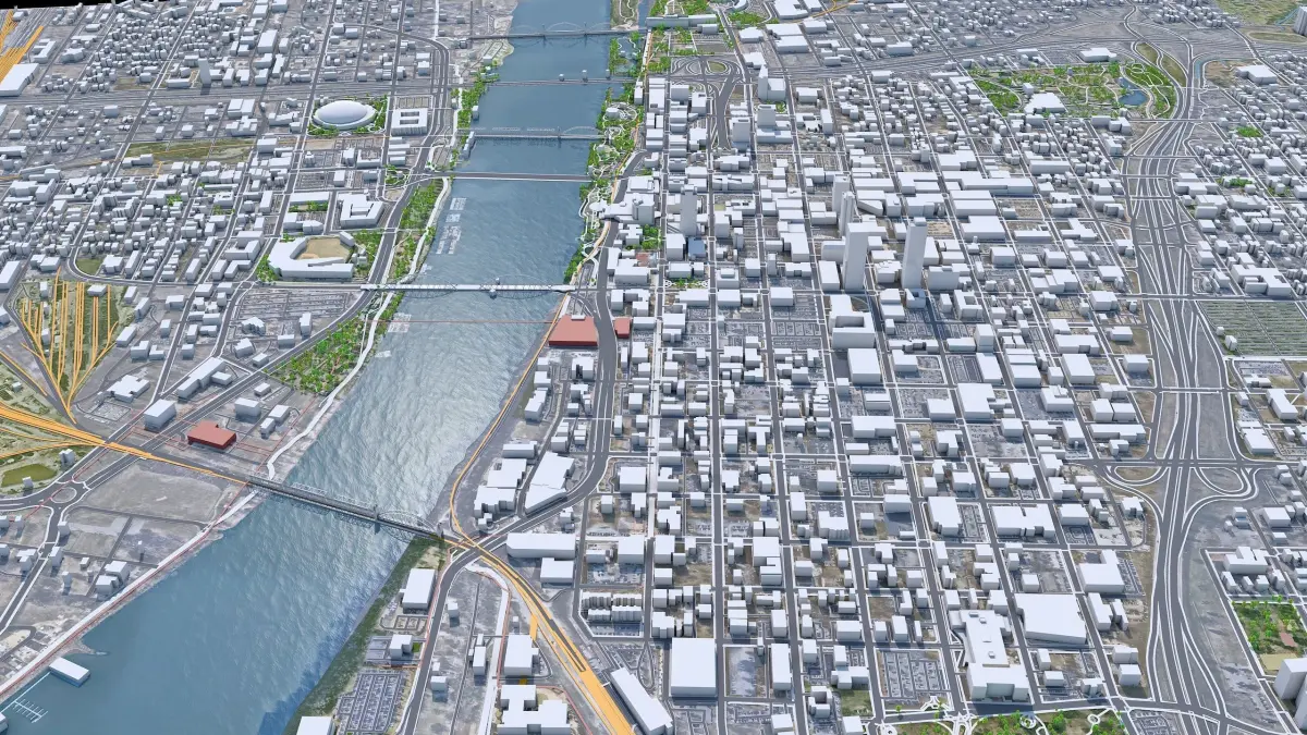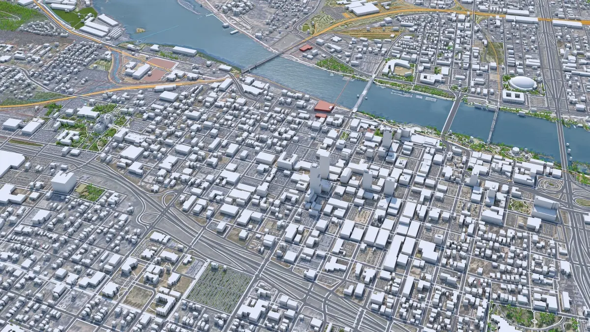 Accurate 3D city model and its surrounding area based on GIS data Year 2022