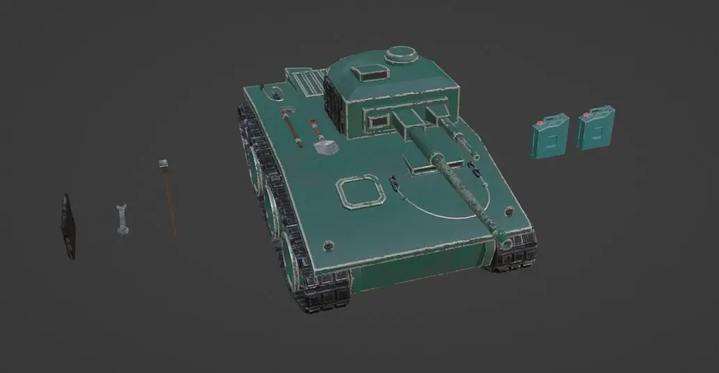 This is a small tank for any scenes or production. High quality textures. The kit includes tools that are also textured. All materials are attached in files of each format.