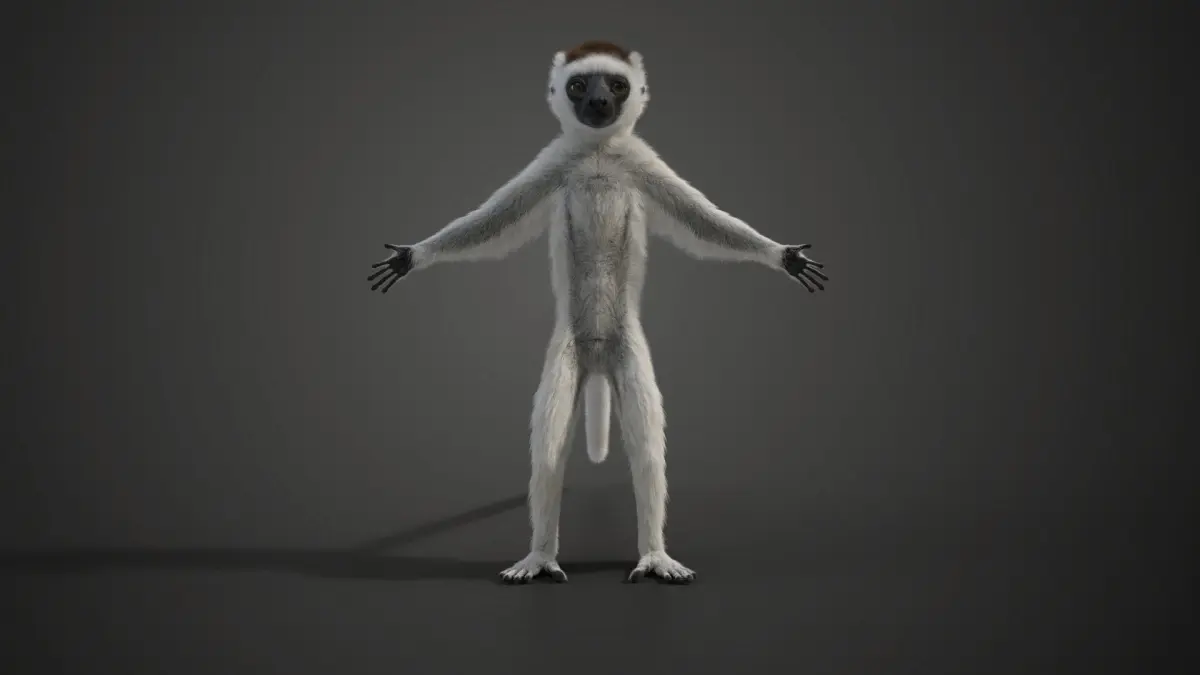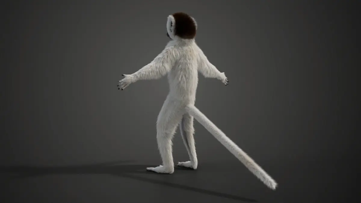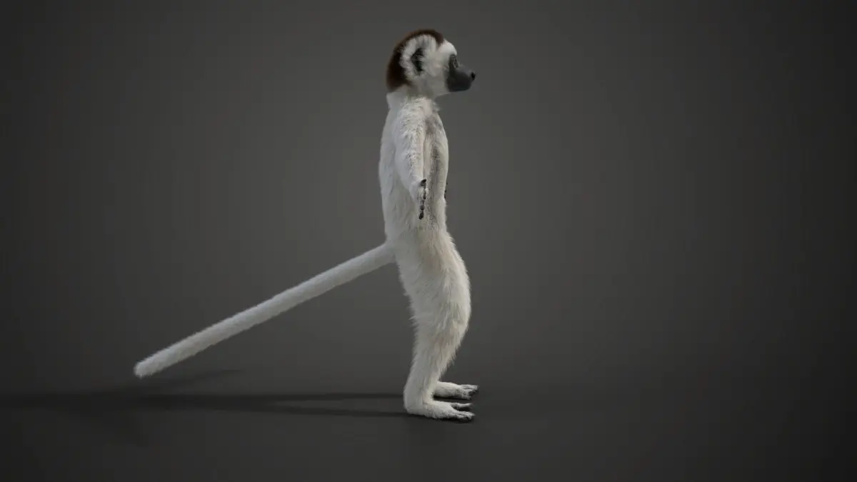 This is a baby white sifaka model with 6K maps, fur and rigging. It's made with Blender and Cycles render.