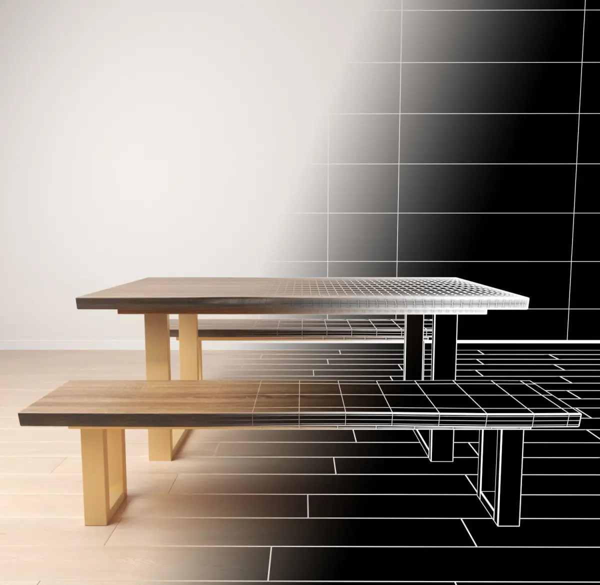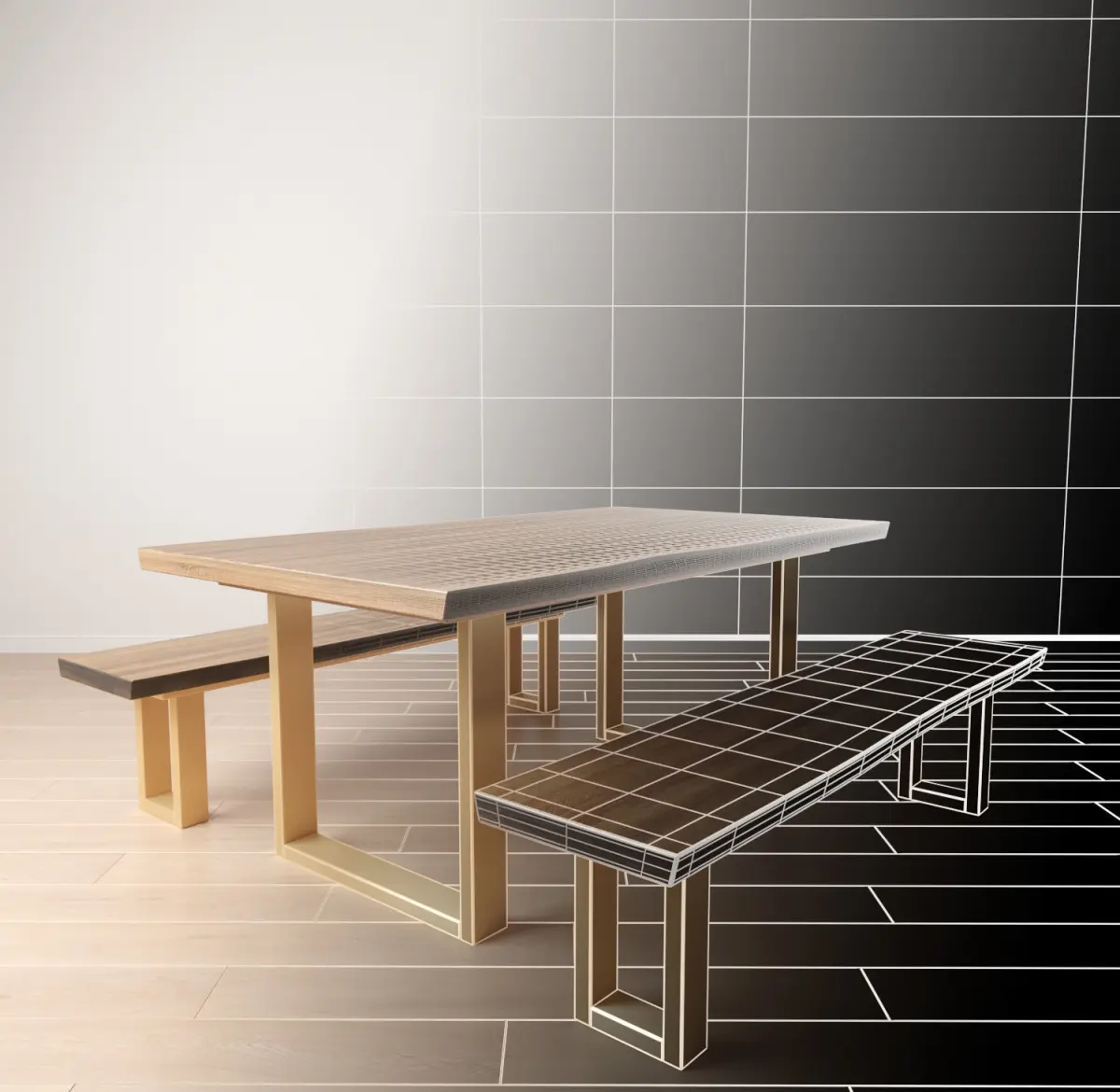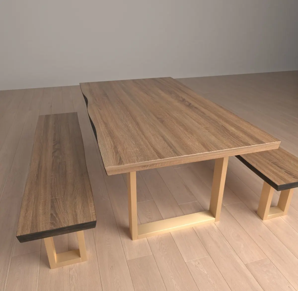 Featuring a matte antique-gold U-shaped base, myriad fine details in the tabletop and a live edge along its perimeter, this piece is a thoroughly modern dining table. Whether you have a cozy kitchen render that needs a unique dining table , an open loft or a formal dining room, let this table be the center piece of your render!