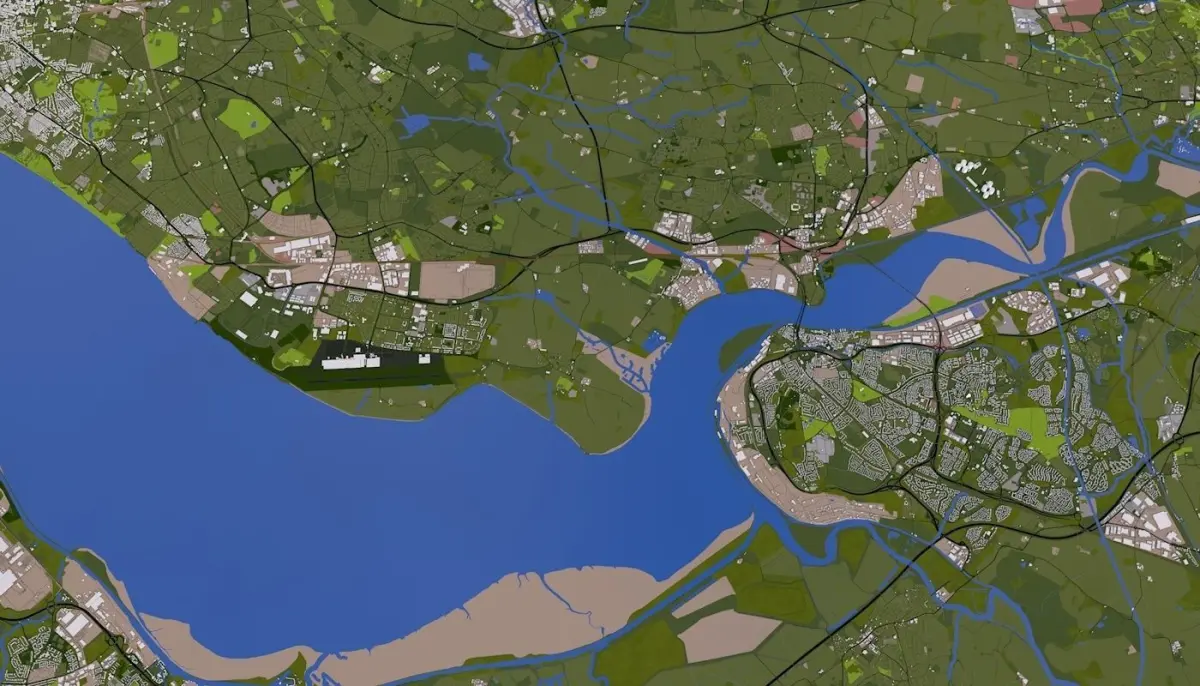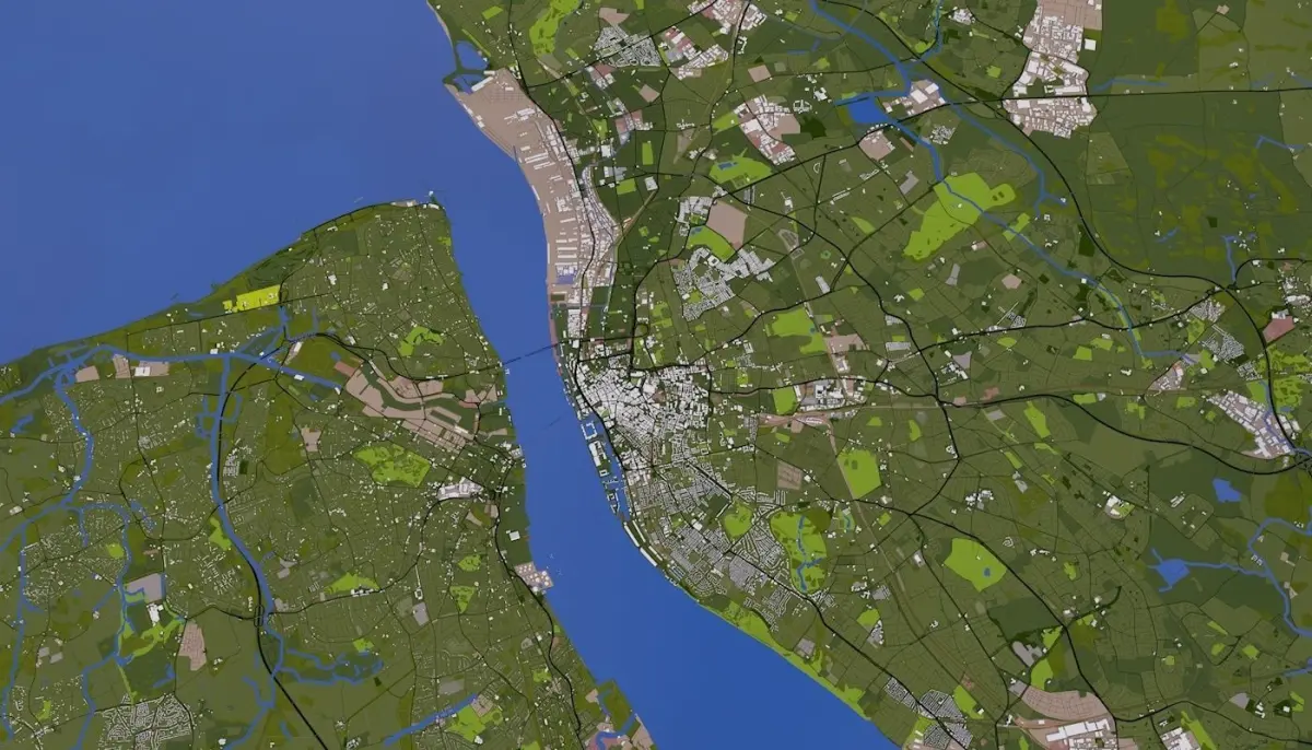 3D representation of Liverpool City England using 2019 map data. Roads, railway, land, water, buildings are made using real world data. Buildings are accurately placed and resembles the real world object up to some extend. Please note that random buildings (varying height) are added to those area where real world data is not available.