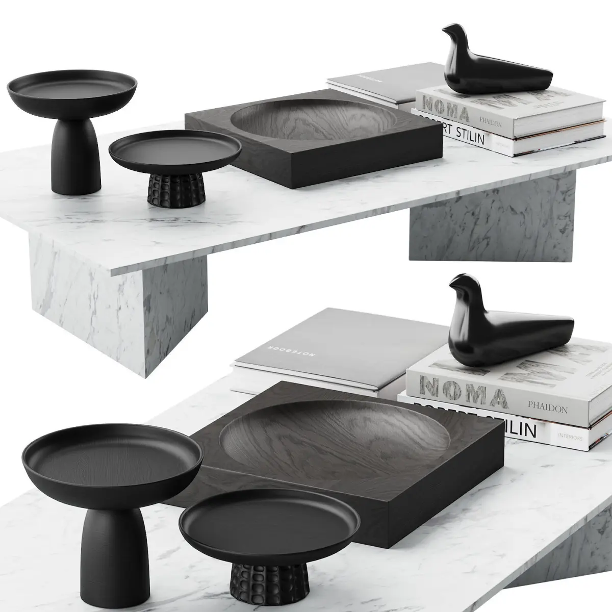 3d model of a decorative set for a coffee table, which can be found in the Conrad Architects project.