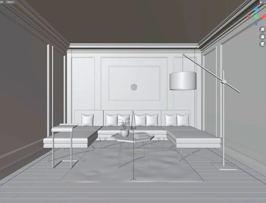 WHAT YOU WILL GET• sofa• center table• 7 nos pillows• Centre table• Floor lamp• Side table • 3 nos books• Plant• rug• Texture (high and low resolution)