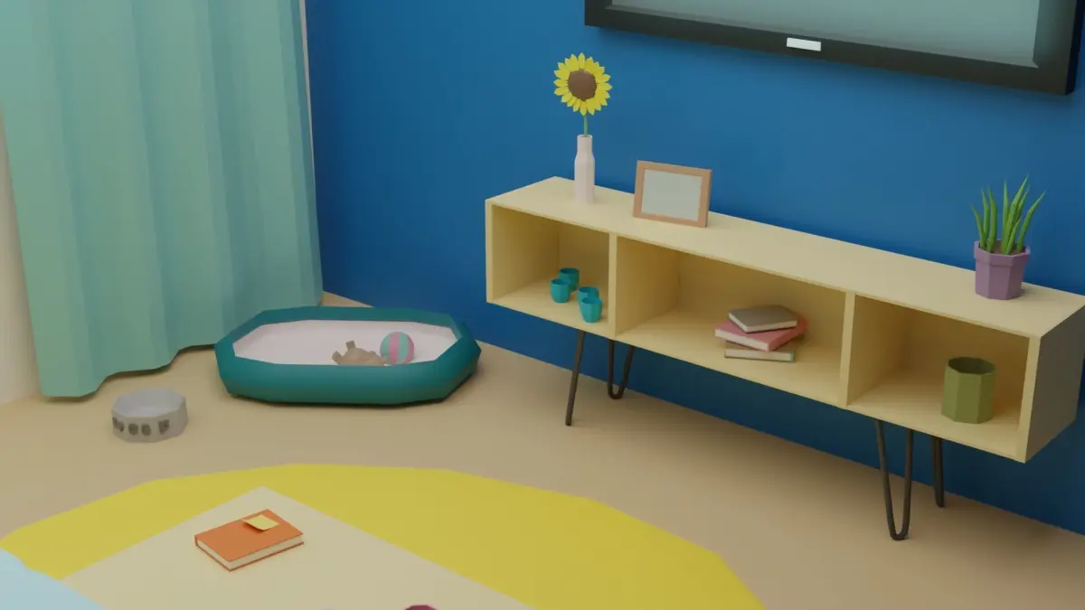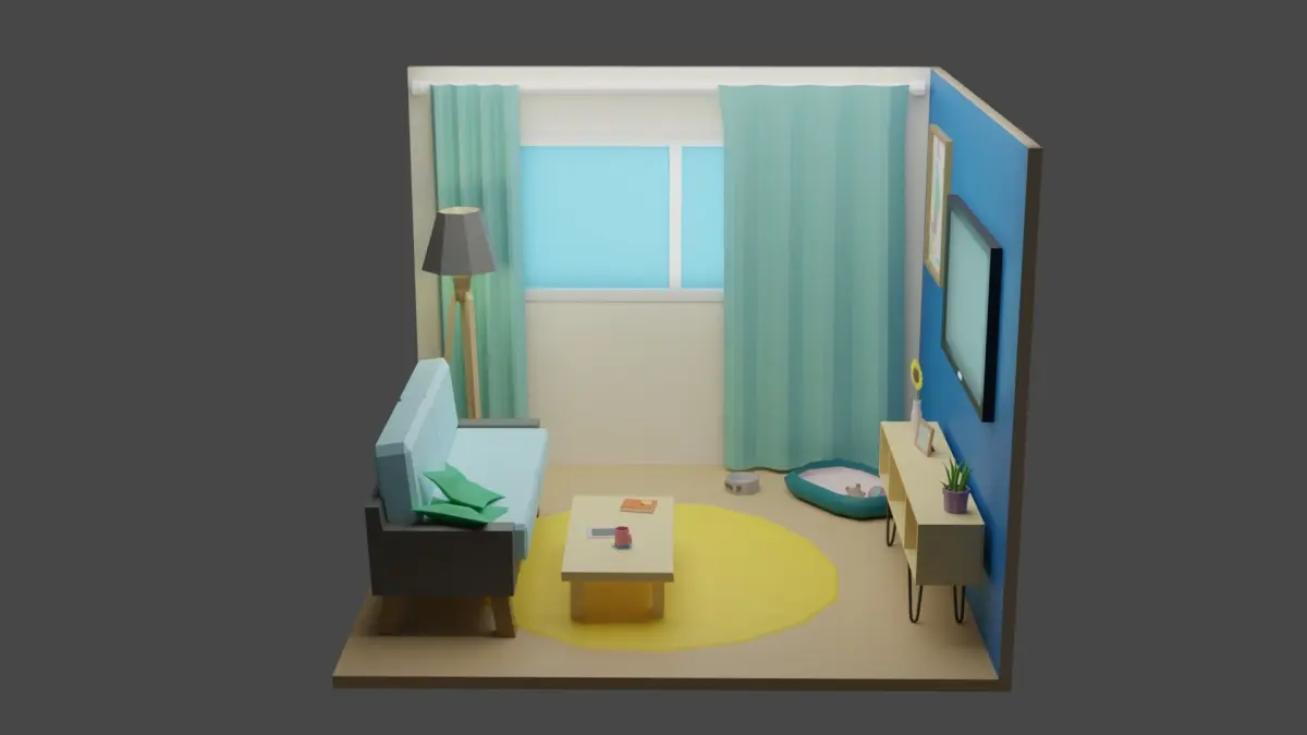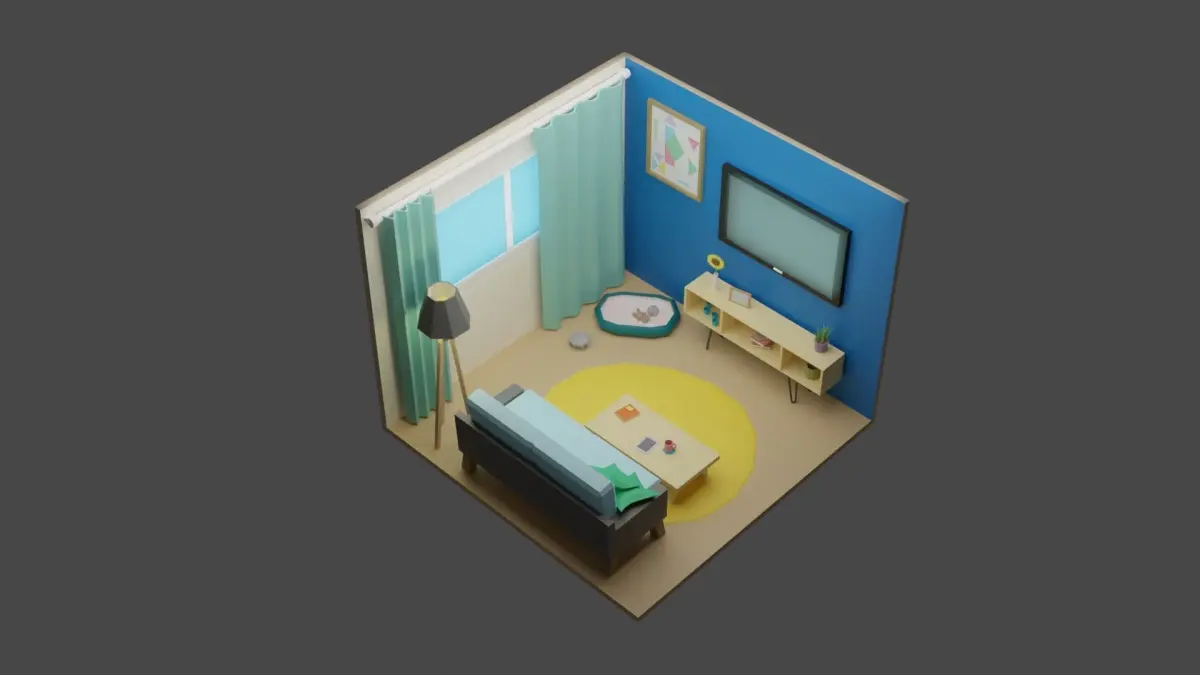 Low poly room is ready to be used for games, rendering and advertising.