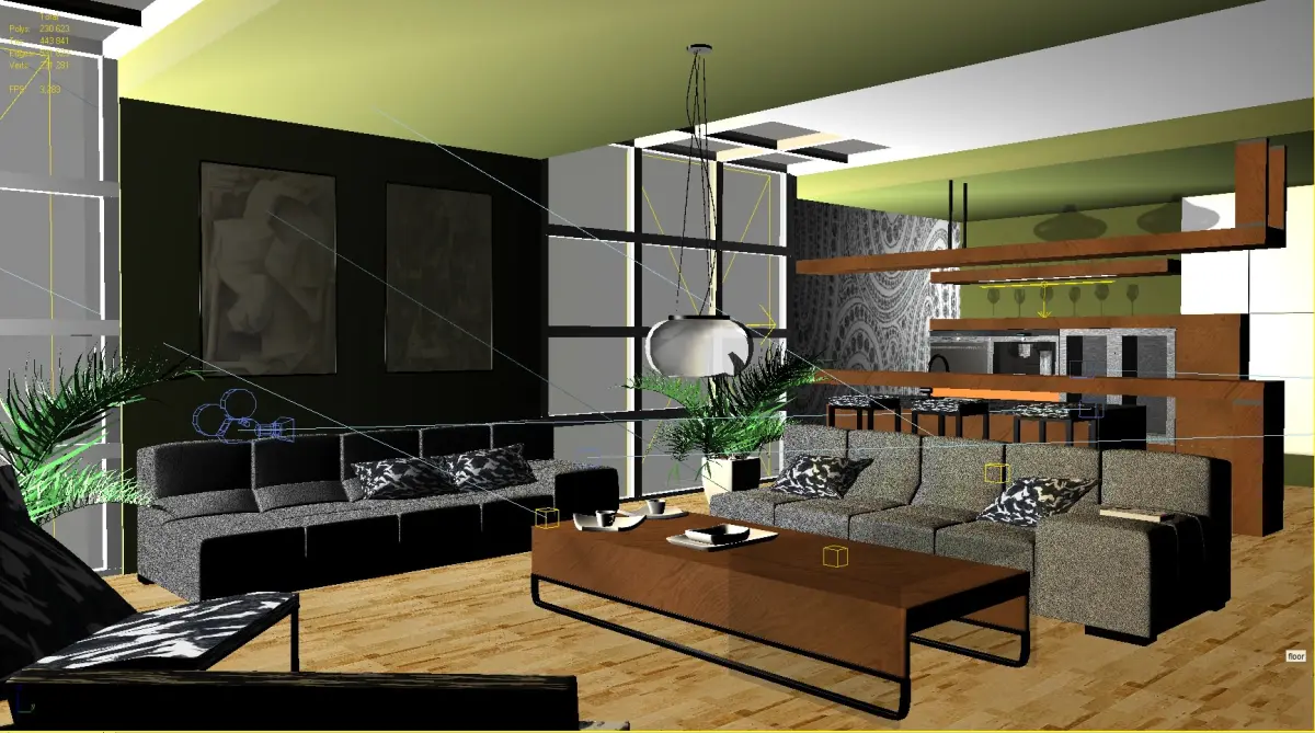 High detailed visualisation. Detailed original model of luxury living room visualisation. All VRAY materials and textures are included and are only for VRAY.Vray Render scene, setup and materials are included and ready to render in V-Ray. Visualisation includes detailed model of siemens coffe machine,oven and other models. All other formats except 3Ds max with Vray are without materials and textures! Rar file contains independent file with model done in 3ds max 2009 and independent file with Render scene with all lights, materials and textures and rendersetup.