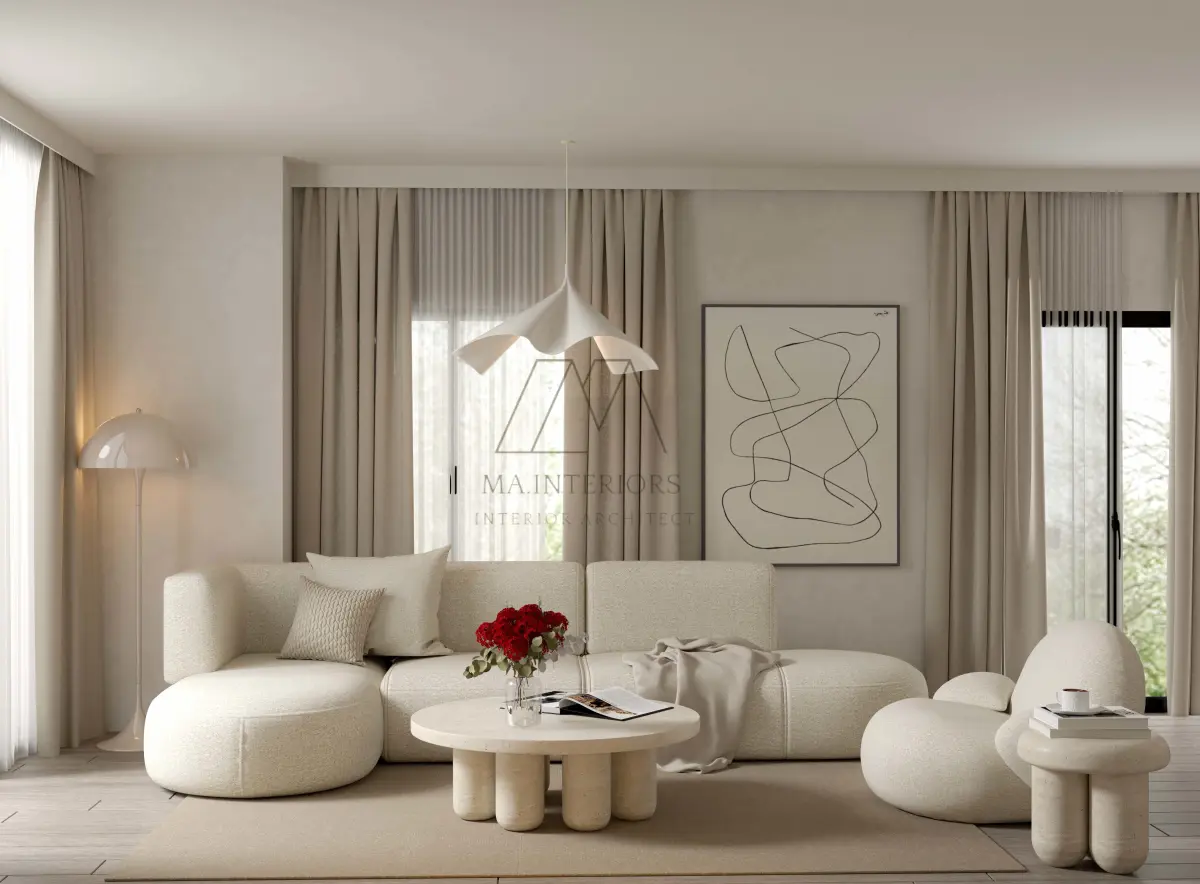 WHİTE COZY İNTERİOR LİVİNG ROOM MODEL AND VRAY READY