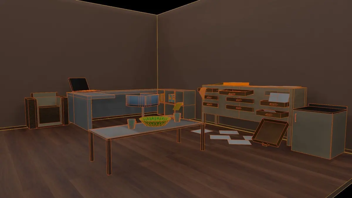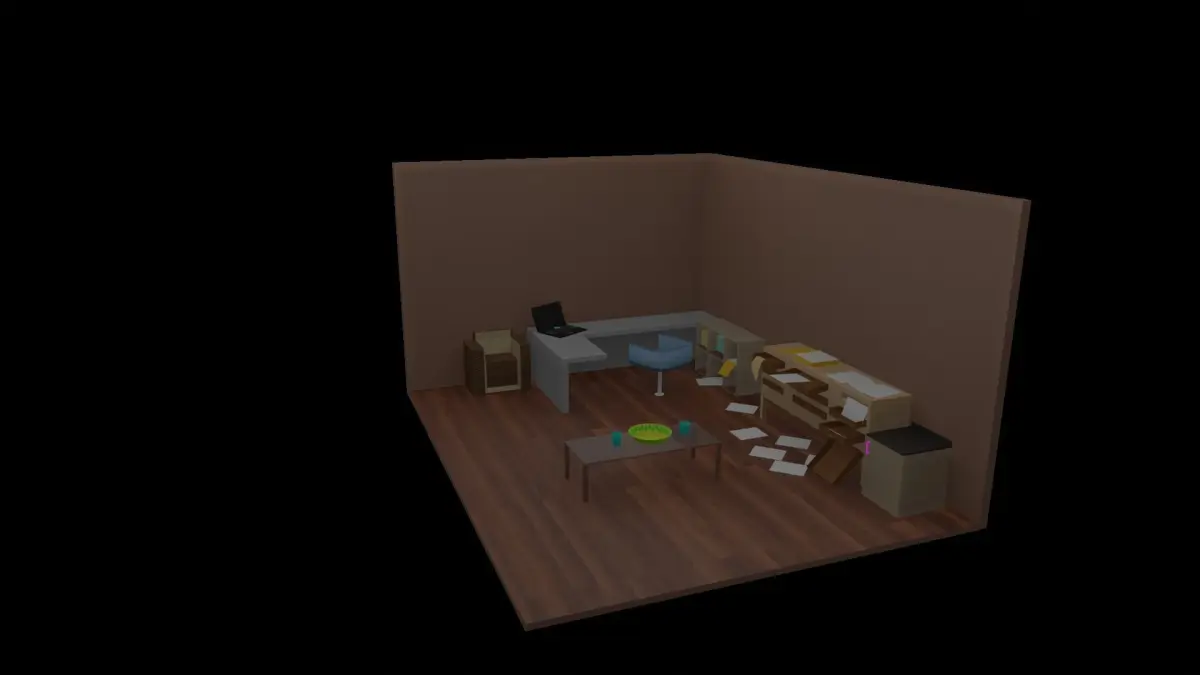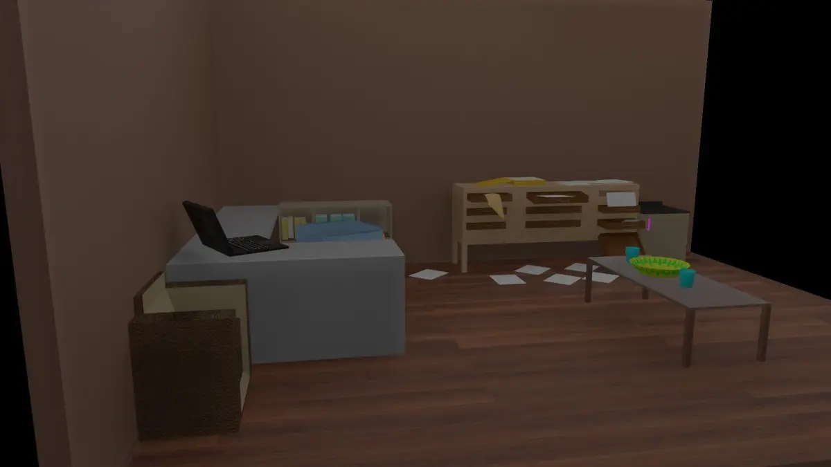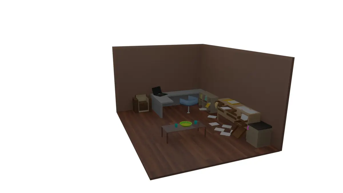 The contents of the room;armchaircomputertablebookpapertowelstudy desk