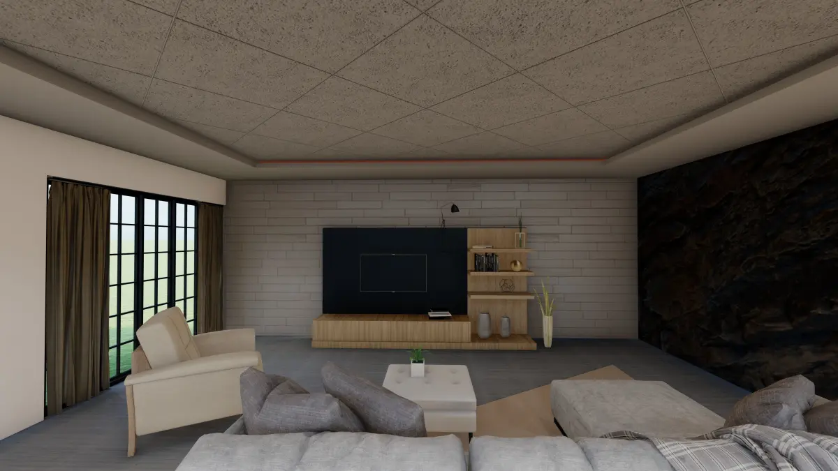 An interior design of a Living Room that combines the elegance and refinement of the classics with the simplicity of modernist interiors. The concept is kept in a neutral color base, in shades of white, black, and gray. The design is made in Sketchup 2020 and rendered in Lumion 2010.5 and Contains textures as well as a few Rendered Images of day, night as well as a birds-eye view.