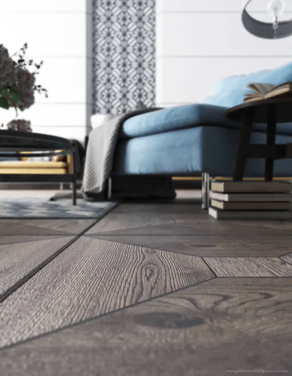 This is an extremely detailed photorealistic scene of a modern living room interior. Fully detailed 3d models and high quality textures.
