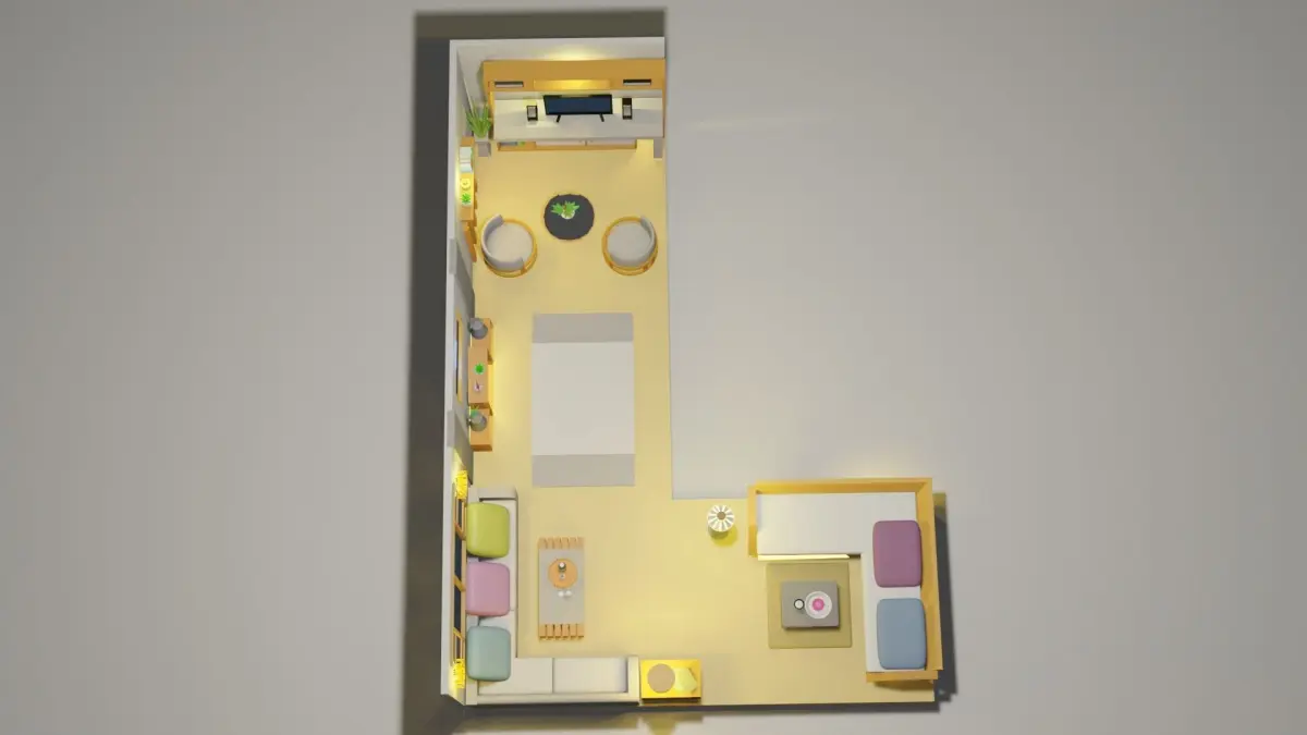 A collection room where the room is designed using the first letter of the room name in the floor plan design. by designing with a simple and attractive style