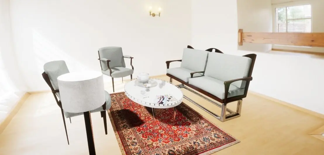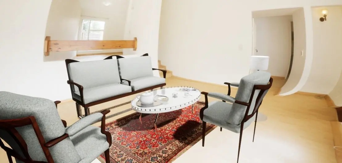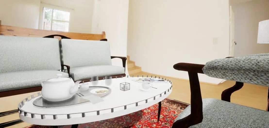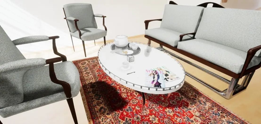 2 - Chairs1 - Sofa1 - Coffee table1 - Lampshade1 - Carpet2 - Magazines3 - Cups2 - Cups1 - Set of cookies1 - Paper Towel3 - Spoons