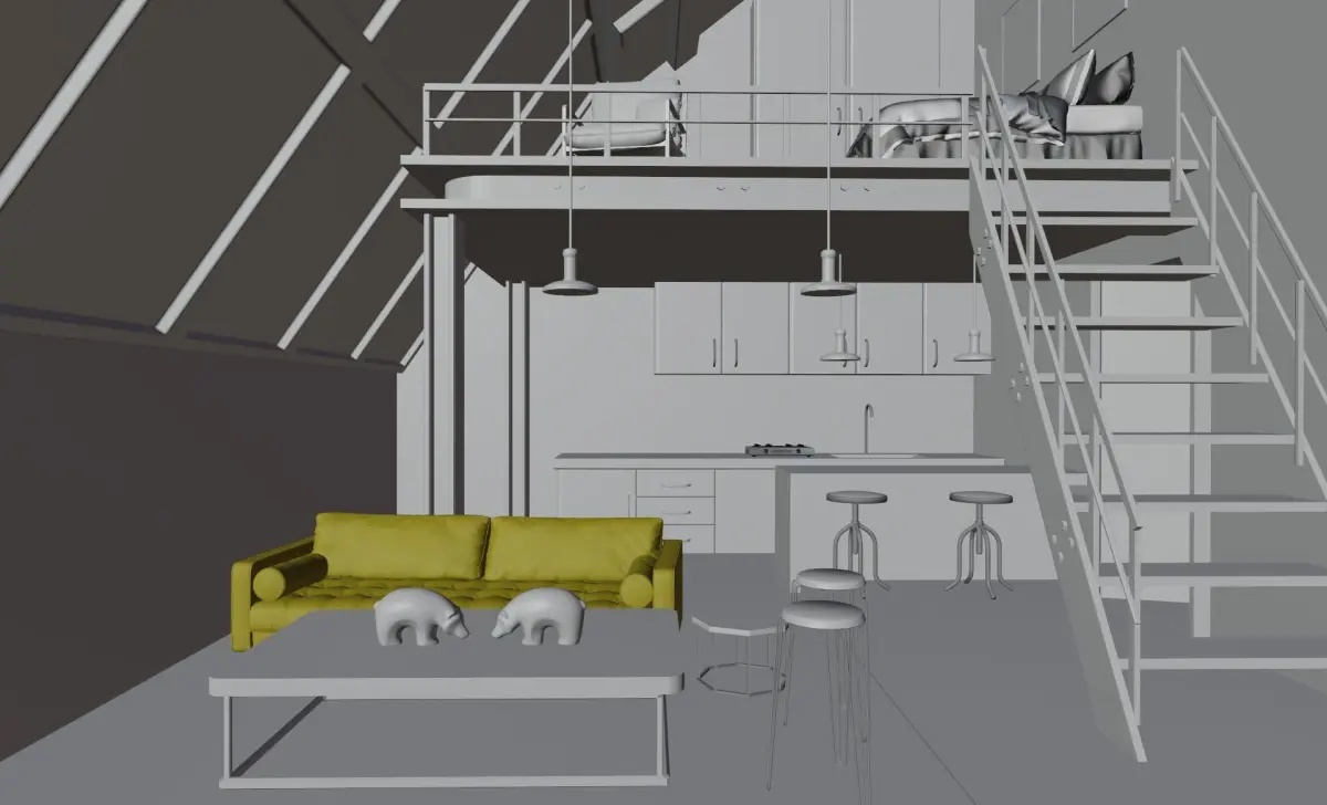 Living room modeled and materials applied in blender. rendered in cycles