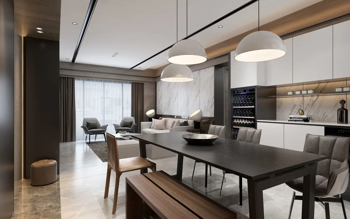 This project contain, living room, dining room . Contain all furniture, lamps,sofa, kitchen,cabinet, table ... etc in modern design from catalogue.