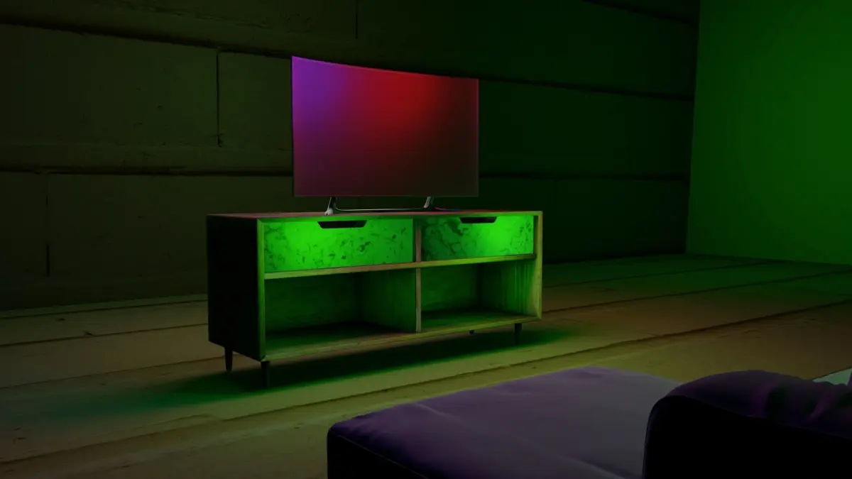 This is the 3d model of living room created in blender it is different types of fil all you can download in one purchase like obj; mlt; fbx; rar .About This : This model contains of a cupboard whis has an aumsum textures with sheen tini and a hard roughness which gives it a true reality from you and and other projects .2.) T.v : IT has an RGB television with attacted cupboard of green lights as youy can see in the preview image .3.) *Sofa *: It is modle with the cover of white fur containing of purple, white, red and gree glowness .