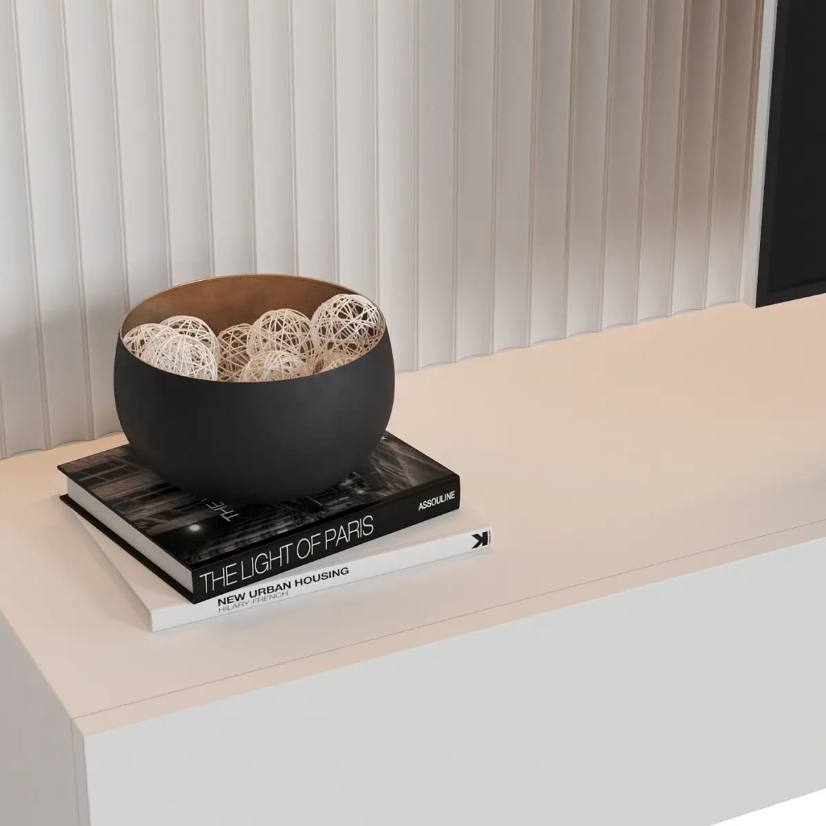Relevant tags: set, decor, books, book, vase, wall, metal, flame, console, minimalism, dark, tv zone, tv, TV, doors, boxes, composition, living room, wall, panel, decorative, stone, gold, lighting, TV wall, RH, Restoration Hardware, orac decor,