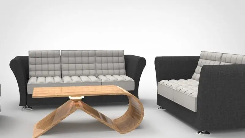 An interior furniture for a sound living room, a full set of a living room sofa alongside a table embedded with a light source emitter.