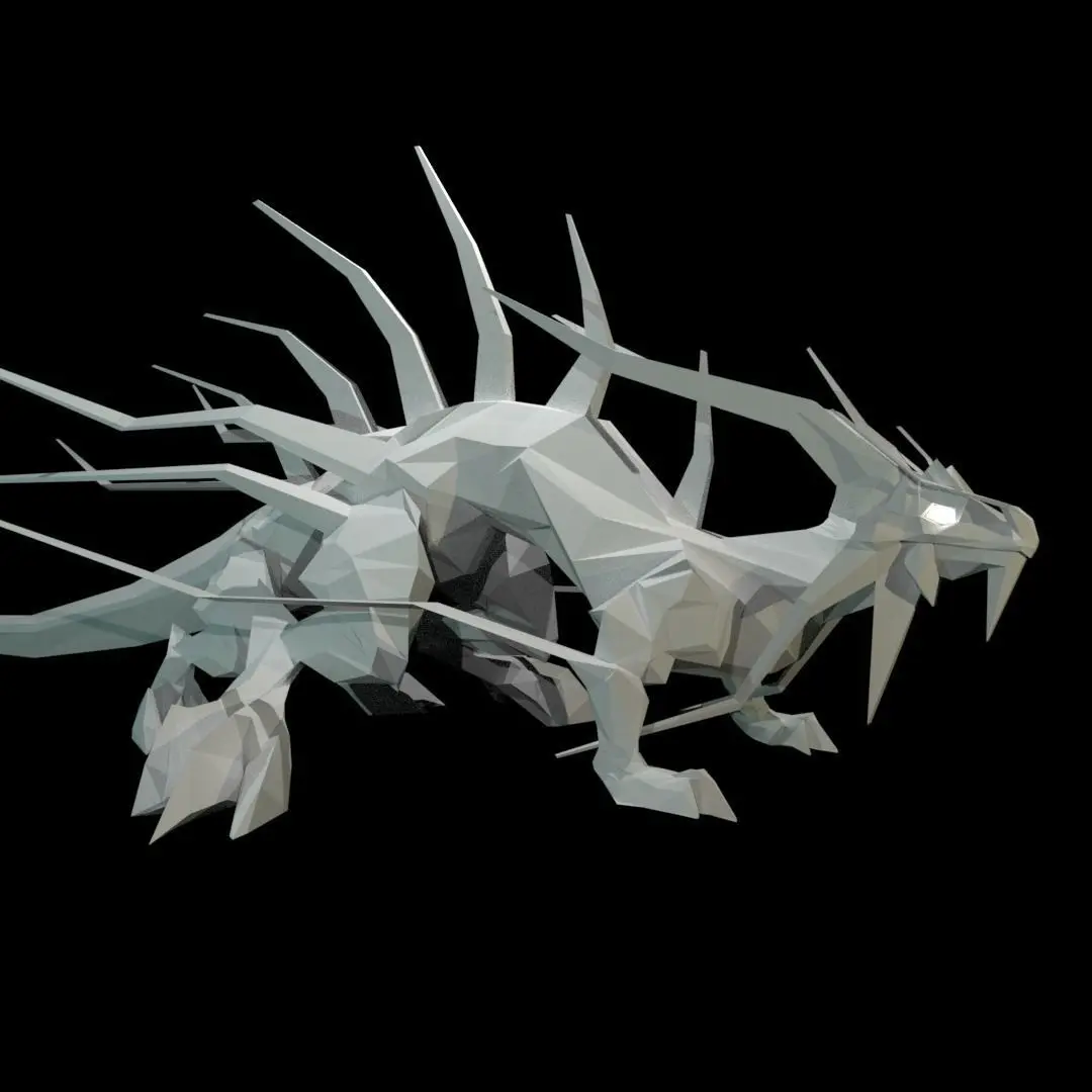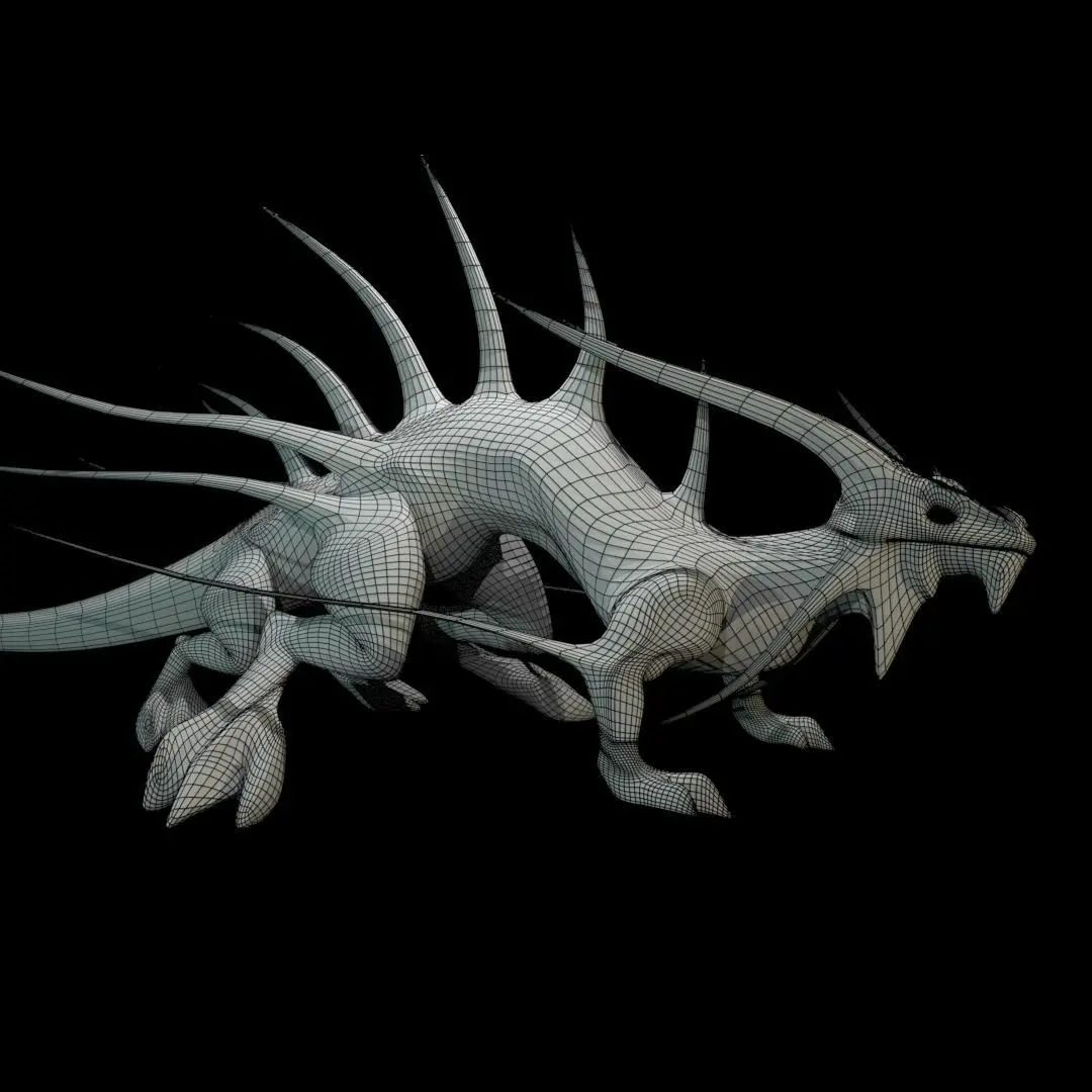 Low-poly lizard dragon model. Ready for games, animations, and VR. Thumbnails are rendered with a subdivision level 2, wireframes are rendered without any subdivision.