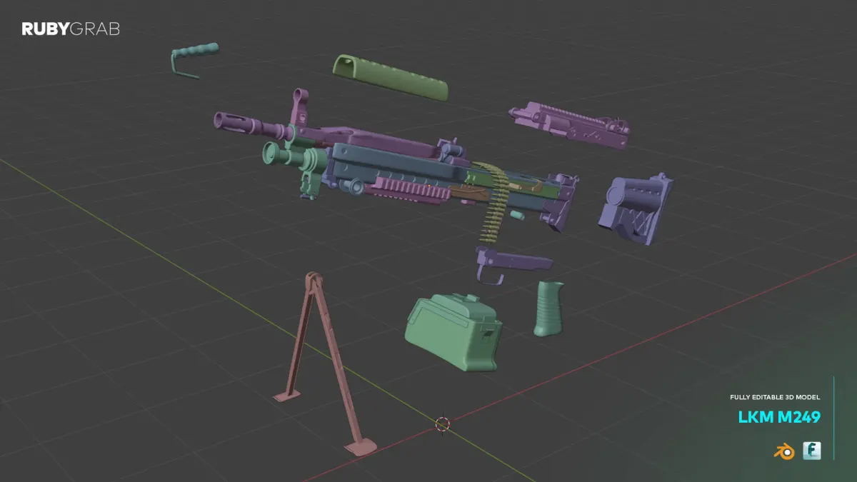 LKM M249 is a highly detailed 3D model designed for realistic military and tactical visualizations. Available in .blend and .fbx formats, this fully editable asset includes intricate parts for authentic rendering. Ideal for simulations, games, or educational projects, it brings a professional level of detail to your work.