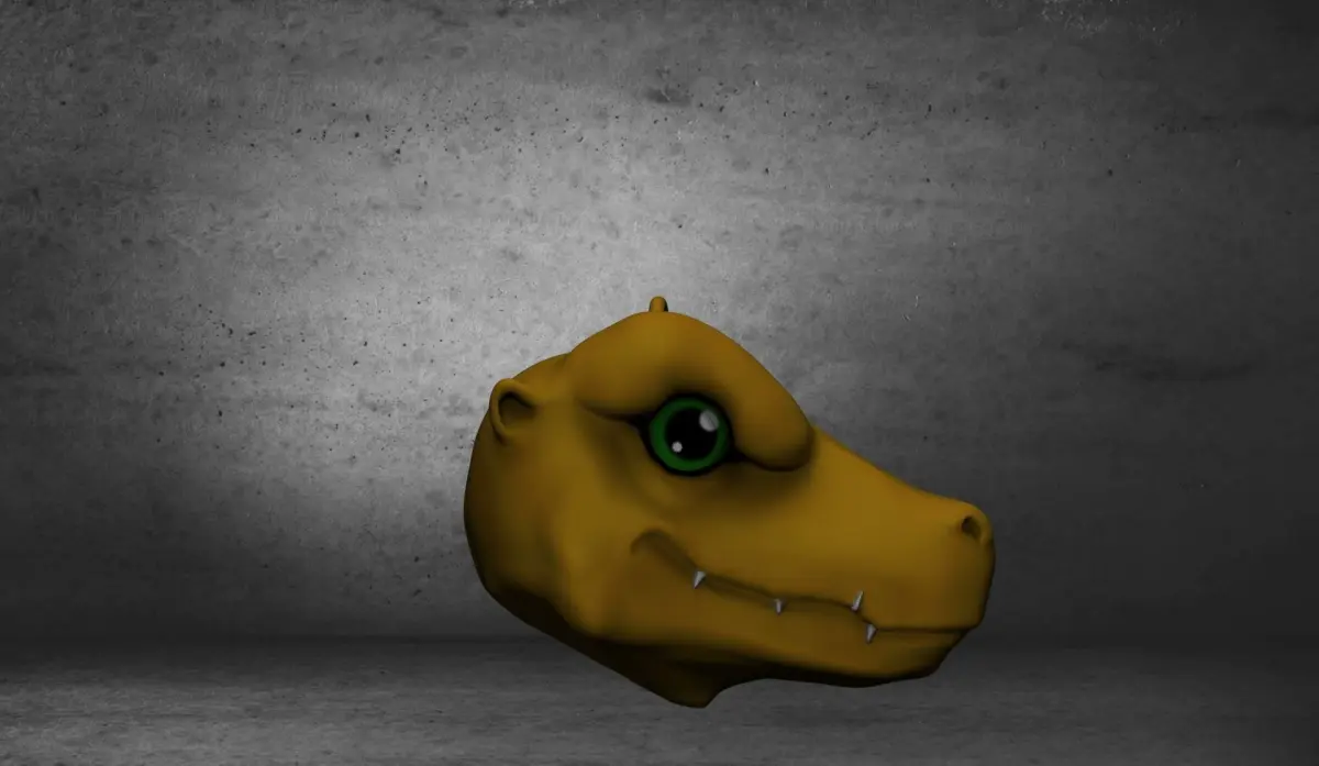 Agumon is a Reptile-Type Digimon that resembles a short, stocky dinosaur, standing about 3 feet tall, and has amber-orange skin and light green eyes. He also has flattened forearms with wide, three-clawed hands, although early concept art for the V-Pet artbooks depicted his hands with four claws and distinct pectoral muscles. His legs and arms appear very vascular. Its tail is short and stubby, and its head and snout are almost as large as the rest of its body.Its special move is to spit fire breath from its mouth to attack the opponent (Baby Flame).