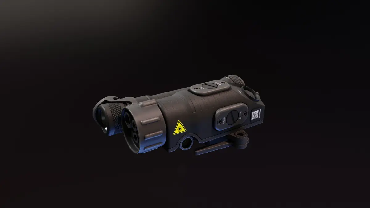 Laser light module by Rheinmetall. It feature a powerful lamp, a red-light laser marker, an infrared laser marker and an electrically focusable infrared illuminator AND it have 3 buttons and a knob that you can press randomly if you are bored.