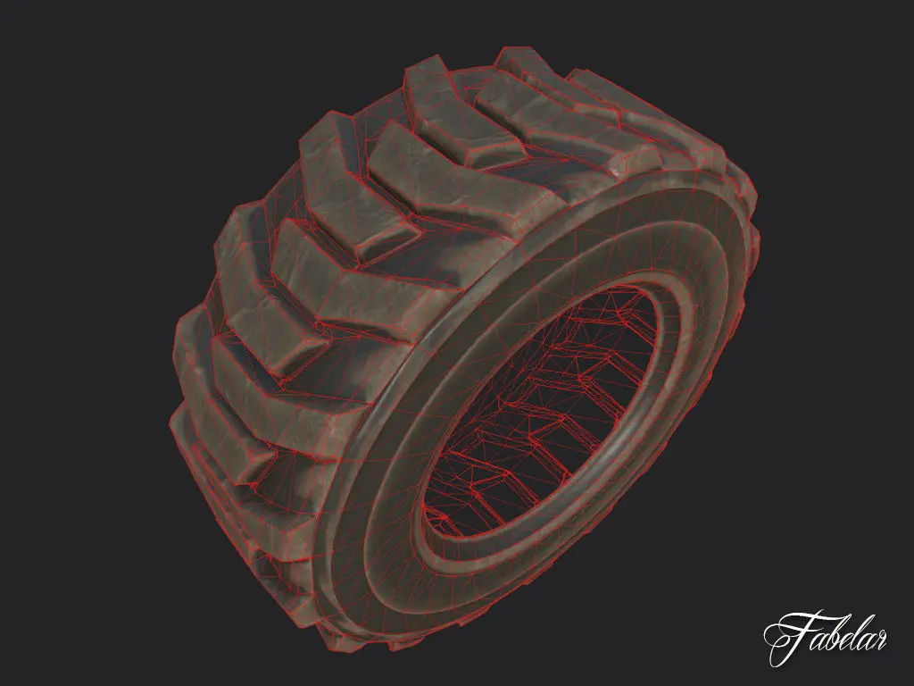Loader tyre dirt lowpoly 3D model, ideal for realtime applications.