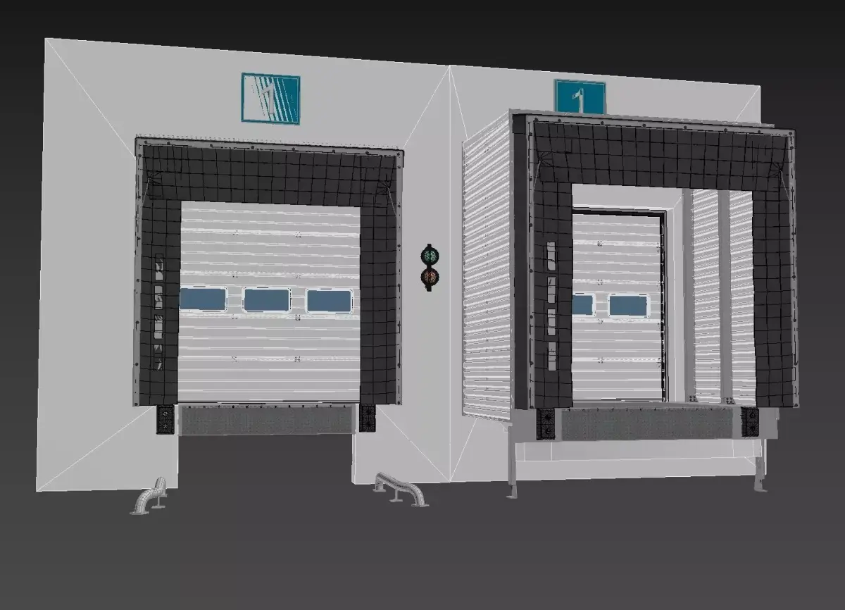 This is a highly detailed 3D model of a loading dock door. You can use it to create projects and learn rendering techniques.