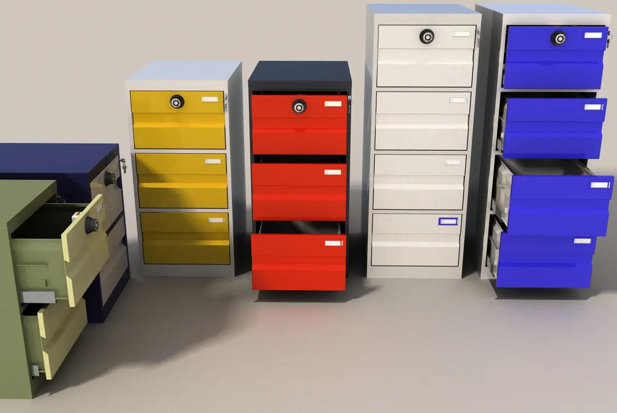 tree model of locker file cabinets used in office with 2-3 and 4 floor and six different color