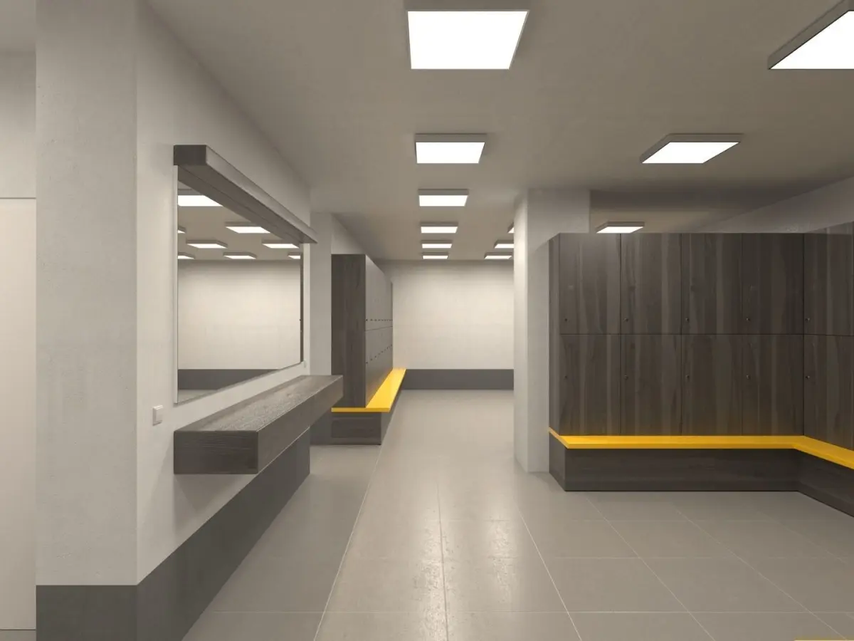 A DETAILED 3D MODEL SCENE OF A CHANGING ROOM / LOCKER ROOM;