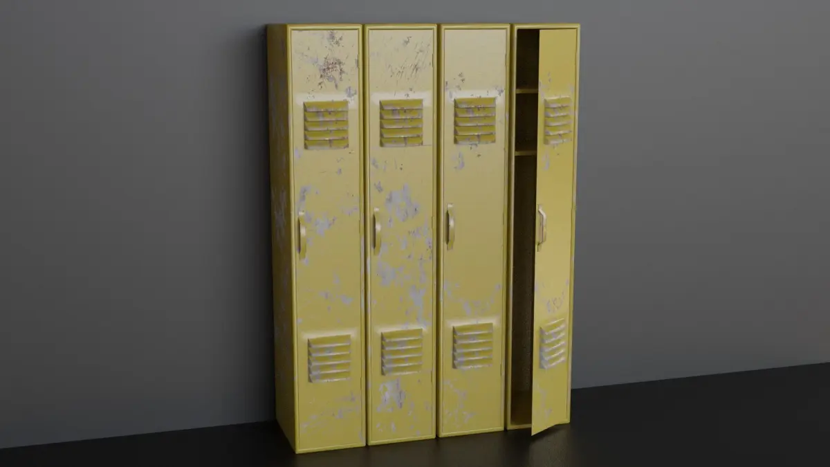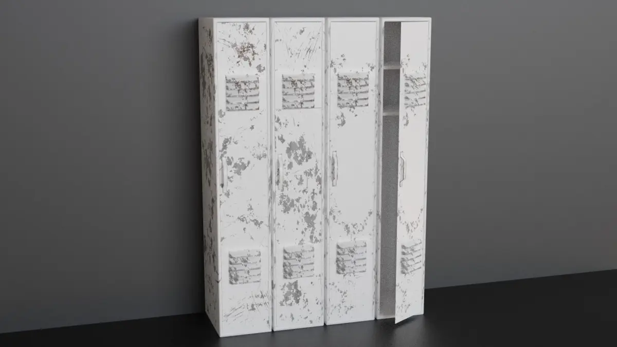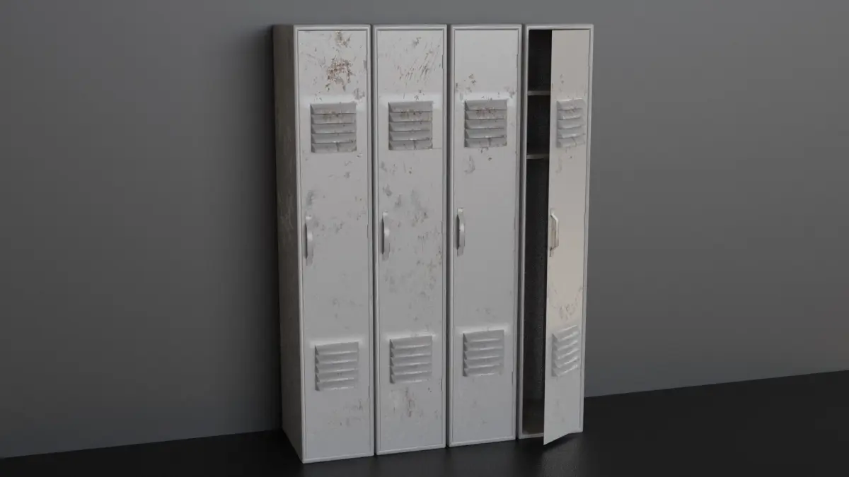 A high quality, realistic collection of lockers with three different sets of damage textures each in six different colours making 18 unique PBR textures (diffuse, roughness and normal maps).