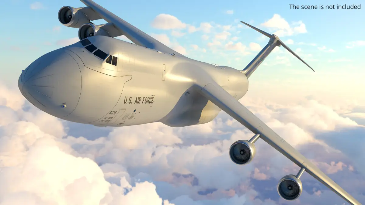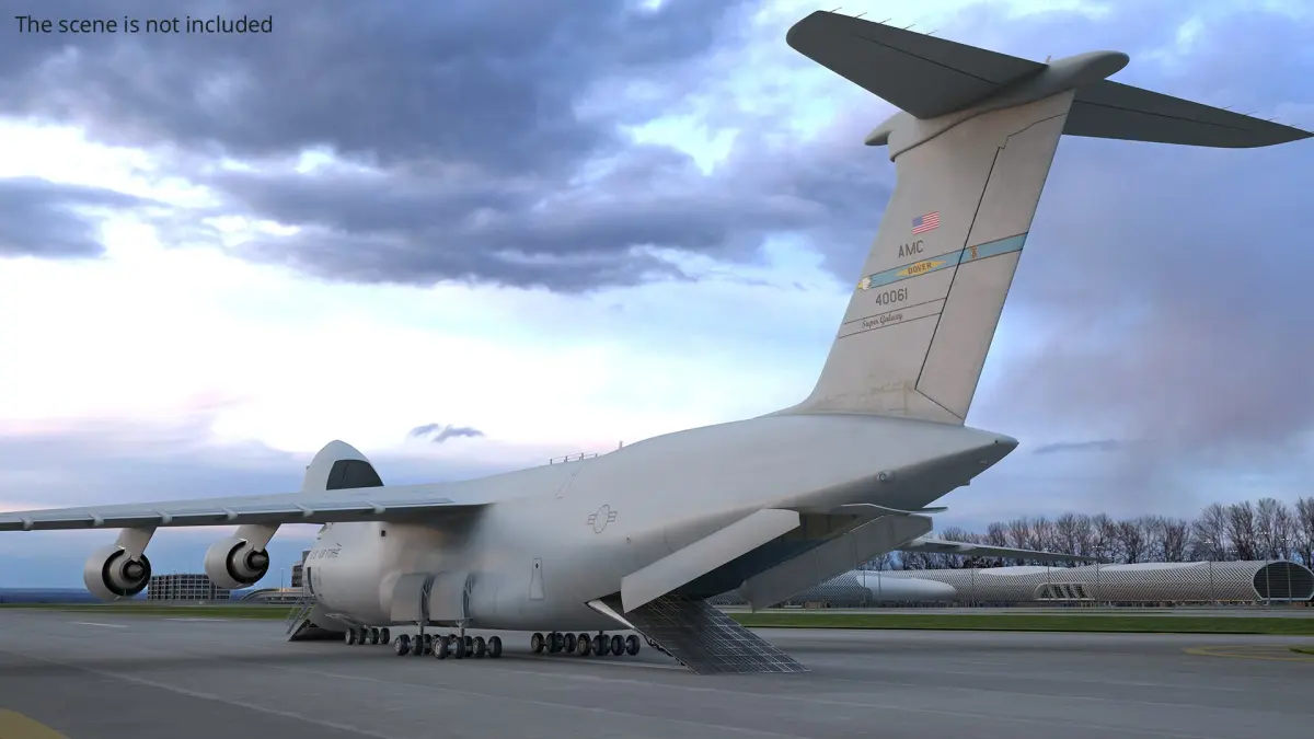 Lockheed C-5M Super Galaxy Military Transport Aircraft Grey with Interior Rigged is a 3d model of a large military cargo plane, known for its impressive cargo-hauling capabilities and used extensively by the U.S. Air Force.