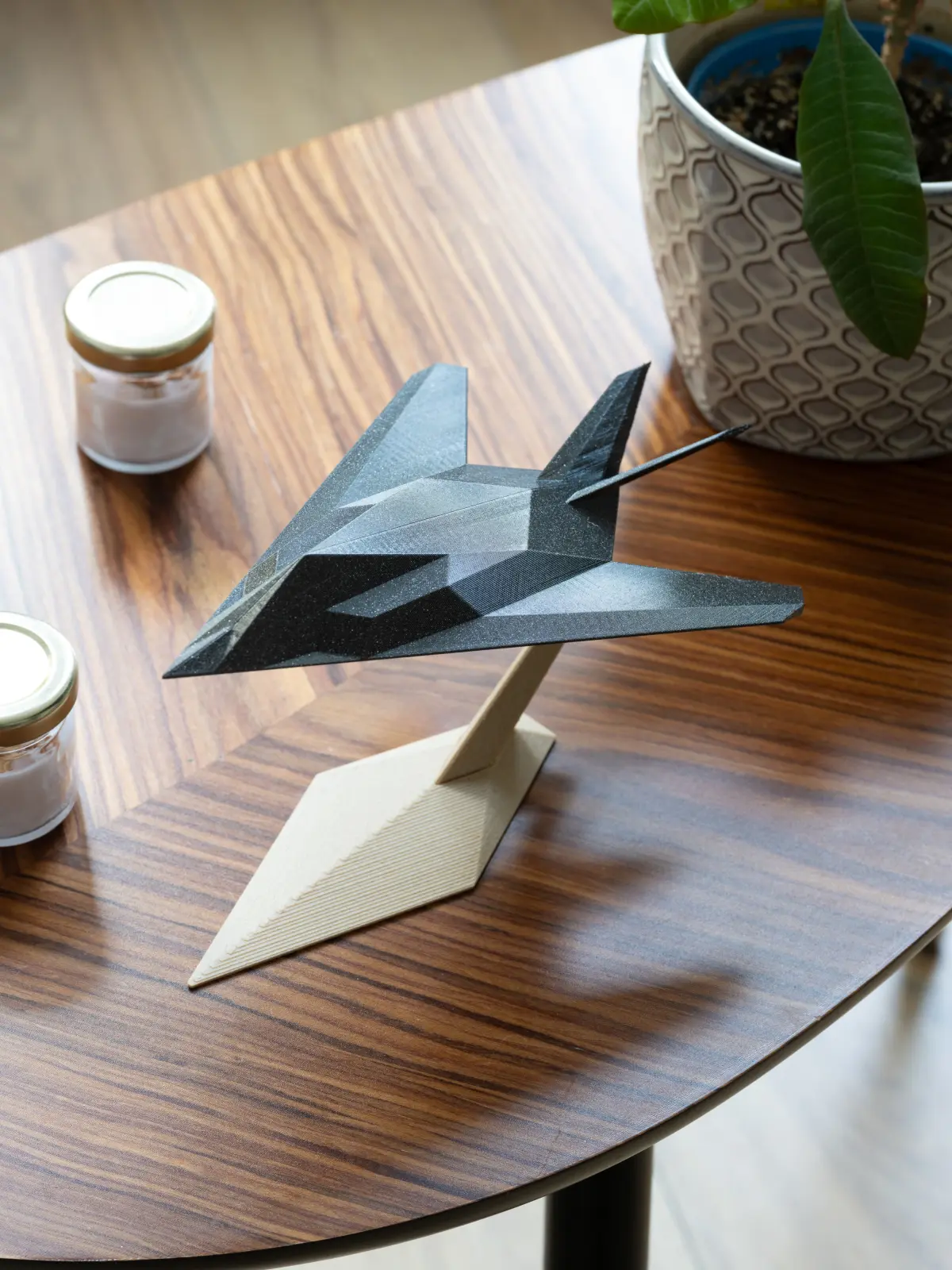 This is a commercial version of the F-117 Display Model.A personal version of this set was published under this link: https://www.printables.com/model/992742-f-117-display-model