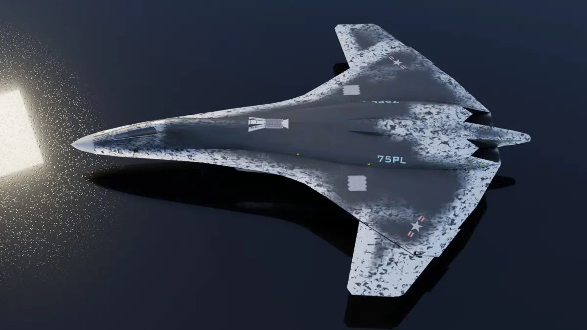 This is my concept of NGAD deux (2nd concept) with manned fighter. For low speed maneuverability wings have reverse variable sweep. Missiles are keept in bottom and top bays. Forward ailerons allows to make it super agile during subsonic flight. Additional airbrakes support flight steering. F-23 style ehaust make this NGAD stealthy.