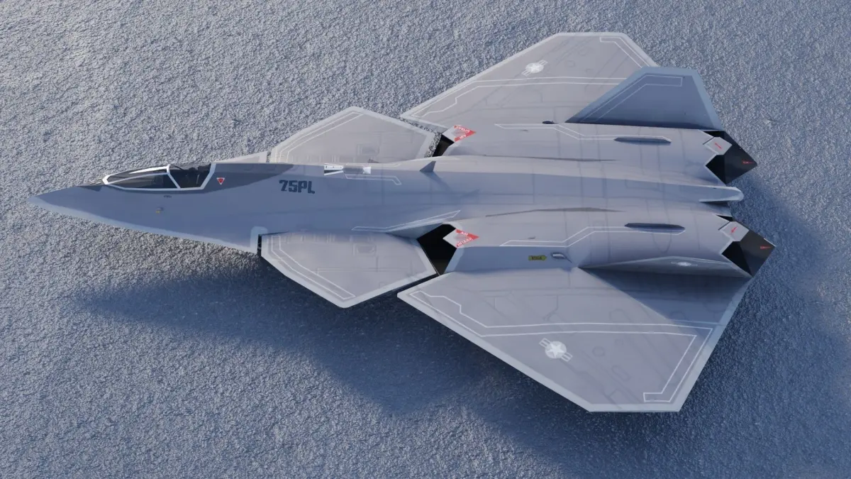 This is my concept of NGAD prime (1st concept) with manned fighter supported by AI piloted drone swarms. Rudder is deployed only for landing and low speed maneuvers. Smooth line and sharp edges lower radar echo and make this fighter stealth.