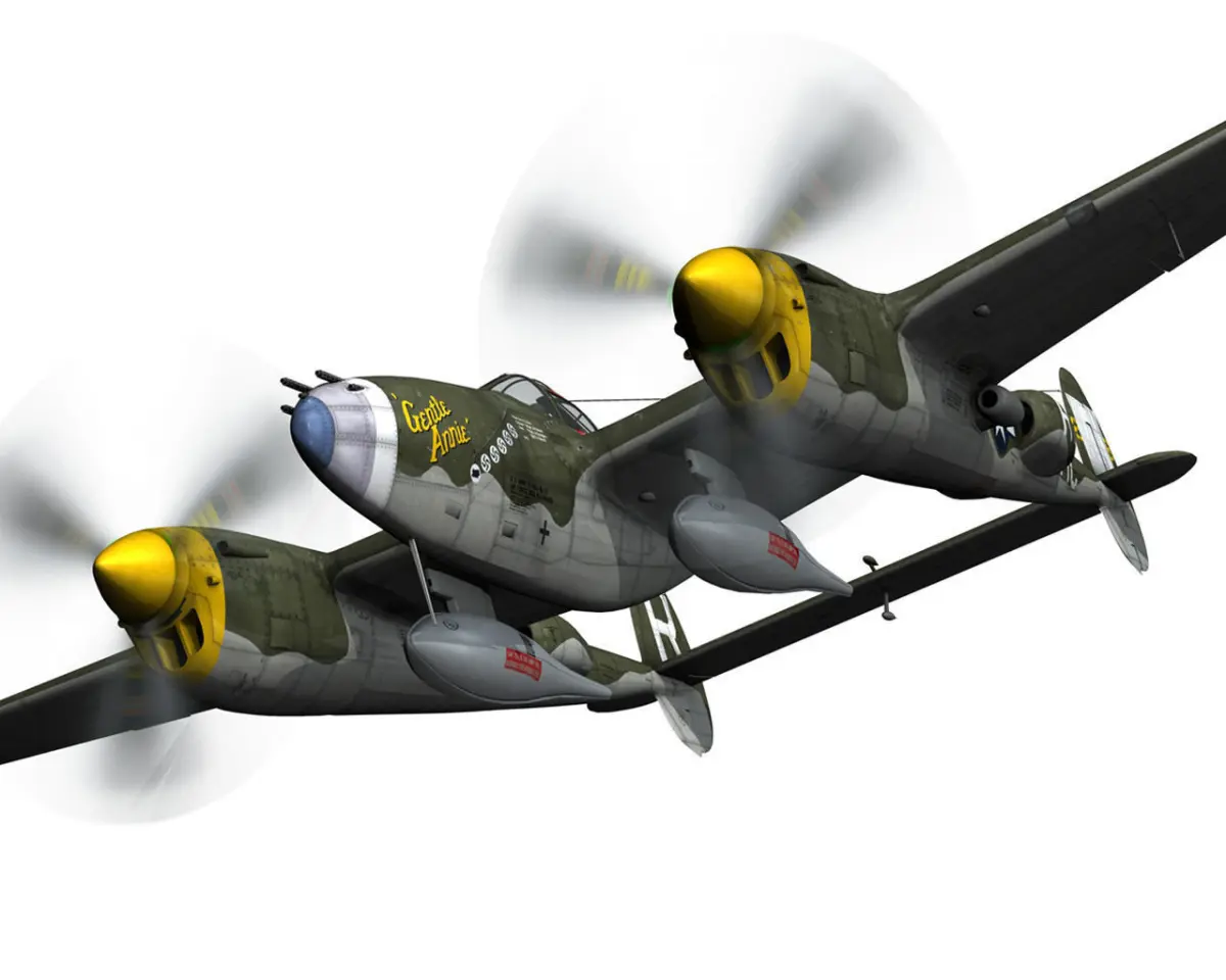 -The files contains seperate parts for a Flying and a Standing-Version-The files contains seperate parts for a Flying and a Standing-Version- NOTE - In obj, lwo and fbx the Alphamap for the propellor (Run_Alpha) in the fly-version must manually load in the Materialcanal / Opacitycanal.- c4d- Polygones - 137505 Vertices - 109142 - 32 Objects- 25 textures - 1 materials - 1 alpha-map - obj File - lwo file - fbx - File Version 2010The first major production version was the P-38E, which had a 20mm cannon rather than the earlier 37mm cannon. Production of the E began in September 1941 and 210 were built. The next version, the P-38F, introduced pylon racks that could carry either bombs or droppable fuel tanks, greatly extending its range. Production of the G began in August 1942, followed by the P-38H in May 1943, which had a more powerful version of the Allison V-1710 engine.